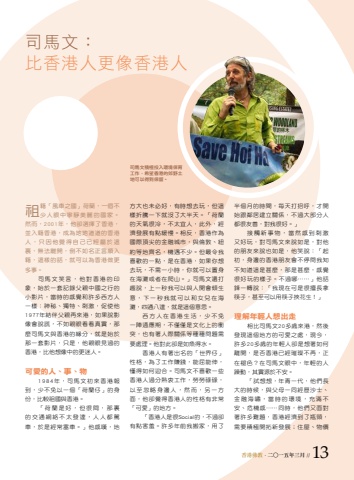 %u9999%u6e2f%u4f5b%u6559 . %u4e8c%u25cb%u4e00%u4e94%u5e74%u4e09%u6708 // 13 %u53f8%u99ac%u6587%uff1a%u6bd4%u9999%u6e2f%u4eba%u66f4%u50cf%u9999%u6e2f%u4eba%u7956%u7c4d%u300c%u98a8%u8eca%u4e4b%u570b%u300d%u8377%u862d%uff0c%u4e00%u500b%u4e0d%u5c11%u4eba%u773c%u4e2d%u5be7%u975c%u7f8e%u9e97%u7684%u570b%u5bb6%u3002%u7136%u800c%uff0c2001%u5e74%uff0c%u4ed6%u537b%u9078%u64c7%u4e86%u9999%u6e2f%uff0c%u4e26%u5165%u7c4d%u9999%u6e2f%uff0c%u6210%u70ba%u5730%u5730%u9053%u9053%u7684%u9999%u6e2f%u4eba%uff0c%u53ea%u56e0%u4ed6%u89ba%u5f97%u81ea%u5df1%u5df2%u7d93%u5c6c%u65bc%u9019%u88cf%uff0c%u7121%u6cd5%u96e2%u958b%uff0c%u5012%u4e0d%u5982%u540d%u6b63%u8a00%u9806%u5165%u7c4d%uff0c%u9019%u6a23%u7684%u8a71%uff0c%u5c31%u53ef%u4ee5%u70ba%u9999%u6e2f%u505a%u66f4%u591a%u4e8b%u3002%u53f8%u99ac%u6587%u7b11%u8a00%uff0c%u4ed6%u5c0d%u9999%u6e2f%u7684%u5370%u8c61%uff0c%u59cb%u65bc%u4e00%u5957%u8a18%u9304%u7236%u89aa%u4e2d%u570b%u4e4b%u884c%u7684%u5c0f%u5f71%u7247%uff0c%u7576%u6642%u7684%u611f%u89ba%u548c%u8a31%u591a%u897f%u65b9%u4eba%u4e00%u6a23%uff1a%u795e%u79d8%u3001%u7368%u7279%u3001%u523a%u6fc0%uff0c%u4fc3%u4f7f%u4ed61977%u5e74%u7d50%u4f34%u7236%u89aa%u518d%u4f86%u6e2f%uff0c%u5982%u679c%u8aaa%u5f71%u50cf%u6703%u8aaa%u8b0a%uff0c%u4e0d%u5982%u89aa%u773c%u770b%u770b%u771f%u5be6%uff0c%u90a3%u9ebc%u53f8%u99ac%u6587%u8207%u9999%u6e2f%u7684%u7de3%u5206%uff0c%u5c31%u662f%u59cb%u65bc%u90a3%u4e00%u5957%u5f71%u7247%uff0c%u53ea%u662f%uff0c%u4ed6%u89aa%u773c%u898b%u904e%u7684%u9999%u6e2f%uff0c%u6bd4%u4ed6%u60f3%u50cf%u4e2d%u7684%u66f4%u8ff7%u4eba%u3002%u53ef%u611b%u7684%u4eba%u3001%u4e8b%u3001%u72691984%u5e74%uff0c%u53f8%u99ac%u6587%u521d%u4f86%u9999%u6e2f%u5831%u5230%uff0c%u5c11%u4e0d%u514d%u4ee5%u4e00%u500b%u300c%u8377%u862d%u4ed4%u300d%u7684%u8eab%u4efd%uff0c%u6bd4%u8f03%u7956%u570b%u8207%u9999%u6e2f%u3002%u300c%u8377%u862d%u662f%u597d%uff0c%u4f46%u5f88%u60b6%uff0c%u90a3%u88cf%u7684%u4ea4%u901a%u7db2%u7d61%u4e0d%u592a%u767c%u9054%uff0c%u4eba%u4eba%u90fd%u99d5%u8eca%uff0c%u65bc%u662f%u7d93%u5e38%u585e%u8eca%u3002%u300d%u4ed6%u611f%u5606%uff0c%u5730%u65b9%u5927%u4e5f%u672a%u5fc5%u597d%uff0c%u6709%u6642%u60f3%u53bb%u73a9%uff0c%u4f46%u9019%u6a23%u6298%u9a30%u4e00%u4e0b%u5c31%u6c92%u4e86%u5927%u534a%u5929%u3002%u300c%u8377%u862d%u7684%u5929%u6c23%u5f88%u51b7%uff0c%u4e0d%u592a%u5b9c%u4eba%uff0c%u6b64%u5916%uff0c%u7d93%u6fdf%u767c%u5c55%u6709%u9ede%u7de9%u6162%u3002%u76f8%u53cd%uff0c%u9999%u6e2f%u4f5c%u70ba%u570b%u969b%u9802%u5c16%u7684%u91d1%u878d%u57ce%u5e02%uff0c%u8207%u502b%u6566%u3001%u7d10%u7d04%u7b49%u5730%u9f4a%u540d%uff0c%u6a5f%u9047%u4e0d%u5c11%u3002%u4f46%u6700%u4ee4%u6211%u559c%u6b61%u7684%u4e00%u9ede%uff0c%u662f%u5728%u9999%u6e2f%uff0c%u5982%u679c%u4f60%u60f3%u53bb%u73a9%uff0c%u4e0d%u9700%u4e00%u5c0f%u6642%uff0c%u4f60%u5c31%u53ef%u4ee5%u7f6e%u8eab%u5728%u6d77%u7058%u6216%u8005%u5728%u722c%u5c71%u3002%u300d%u53f8%u99ac%u6587%u9084%u6253%u8da3%u8aaa%uff0c%u4e0a%u4e00%u79d2%u6211%u53ef%u4ee5%u8207%u4eba%u958b%u6703%u50be%u751f%u610f%uff0c%u4e0b%u4e00%u79d2%u6211%u5c31%u53ef%u4ee5%u548c%u5973%u5152%u5728%u6d77%u7058%uff0c%u56db%u901a%u516b%u9054%uff0c%u5c31%u662f%u9019%u500b%u610f%u601d%u3002%u897f%u65b9%u4eba%u5728%u9999%u6e2f%u751f%u6d3b%uff0c%u5c11%u4e0d%u514d%u4e00%u9663%u9069%u61c9%u671f%uff0c%u4e0d%u50c5%u50c5%u662f%u6587%u5316%u4e0a%u7684%u885d%u7a81%uff0c%u4e5f%u6709%u8457%u4eba%u969b%u95dc%u4fc2%u7b49%u7a2e%u7a2e%u554f%u984c%u9700%u8981%u8655%u7406%u3002%u4ed6%u5c0d%u6b64%u537b%u662f%u5982%u9b5a%u5f97%u6c34%u3002%u9999%u6e2f%u4eba%u6709%u8457%u51fa%u540d%u7684%u300c%u4e16%u754c%u4ed4%u300d%u6027%u683c%uff0c%u70ba%u4e86%u5de5%u4f5c%u8cfa%u9322%uff0c%u80fd%u5c48%u80fd%u4f38%uff0c%u61c2%u5f97%u5982%u4f55%u8fce%u5408%u3002%u53f8%u99ac%u6587%u4e0d%u559c%u6b61%u4e00%u4e9b%u9999%u6e2f%u4eba%u904e%u5206%u71b1%u8877%u5de5%u4f5c%uff0c%u52de%u52de%u788c%u788c%uff0c%u4ee5%u81f3%u5ffd%u7565%u8eab%u908a%u4eba%uff0c%u7136%u800c%uff0c%u53e6%u4e00%u65b9%u9762%uff0c%u4ed6%u537b%u89ba%u5f97%u9999%u6e2f%u4eba%u7684%u6027%u683c%u6709%u975e%u5e38%u300c%u53ef%u611b%u300d%u7684%u5730%u65b9%u3002%u300c%u9999%u6e2f%u4eba%u662f%u5f88Social%u7684%uff0c%u4e0d%u904e%u537b%u6709%u9ede%u5bb3%u7f9e%u3002%u8a31%u591a%u5e74%u524d%u6211%u642c%u5bb6%uff0c%u7528%u4e86%u534a%u500b%u6708%u7684%u6642%u9593%uff0c%u6bcf%u5929%u6253%u62db%u547c%uff0c%u624d%u958b%u59cb%u8ddf%u9130%u5c45%u5efa%u7acb%u95dc%u4fc2%uff0c%u4e0d%u904e%u5927%u90e8%u5206%u4eba%u90fd%u5f88%u53cb%u5584%uff0c%u5c0d%u6211%u5f88%u597d%u3002%u300d%u63a5%u89f8%u65b0%u4e8b%u7269%uff0c%u7576%u7136%u611f%u5230%u523a%u6fc0%u53c8%u597d%u73a9%uff0c%u5c0d%u53f8%u99ac%u6587%u4f86%u8aaa%u5982%u662f%uff0c%u5c0d%u4ed6%u7684%u670b%u53cb%u4f86%u8aaa%u4e5f%u5982%u662f%uff0c%u4ed6%u7b11%u8aaa%uff1a%u300c%u8d77%u521d%uff0c%u8eab%u908a%u7684%u9999%u6e2f%u670b%u53cb%u6703%u4e0d%u505c%u554f%u6211%u77e5%u4e0d%u77e5%u9053%u9019%u662f%u751a%u9ebc%uff0c%u90a3%u662f%u751a%u9ebc%uff0c%u611f%u89ba%u5f88%u597d%u73a9%u7684%u6a23%u5b50%u3002%u4e0d%u904e%u54ea%u2026%u2026%u300d%u4ed6%u8a71%u92d2%u4e00%u8f49%u8aaa%uff1a%u300c%u6211%u73fe%u5728%u53ef%u662f%u5f88%u64c5%u9577%u62ff%u7b77%u5b50%uff0c%u751a%u81f3%u53ef%u4ee5%u7528%u7b77%u5b50%u633e%u82b1%u751f%uff01%u300d%u7406%u89e3%u5e74%u8f15%u4eba%u60f3%u51fa%u8d70%u76f8%u6bd4%u53f8%u99ac%u658720%u591a%u6b72%u4f86%u6e2f%uff0c%u7136%u5f8c%u767c%u73fe%u9019%u500b%u5730%u65b9%u7684%u53ef%u611b%u4e4b%u8655%uff0c%u73fe%u4eca%uff0c%u8a31%u591a20%u591a%u6b72%u7684%u5e74%u8f15%u4eba%u537b%u662f%u60f3%u8457%u5982%u4f55%u96e2%u958b%uff0c%u662f%u5426%u9999%u6e2f%u5df2%u7d93%u7480%u74a8%u4e0d%u518d%uff0c%u6b63%u5728%u892a%u8272%uff1f%u5728%u53f8%u99ac%u6587%u773c%u4e2d%uff0c%u5e74%u8f15%u7684%u4eba%u8e81%u52d5%uff0c%u5176%u5be6%u6e90%u65bc%u4e0d%u5b89%u3002%u300c%u8a66%u60f3%u60f3%uff0c%u5e74%u9752%u4e00%u4ee3%uff0c%u4ed6%u5011%u9577%u5927%u7684%u6642%u5019%uff0c%u8207%u7236%u6bcd%u4e00%u540c%u7d93%u6b77%u6c99%u58eb%u3001%u91d1%u878d%u6d77%u562f%uff0c%u7576%u6642%u7684%u74b0%u5883%uff0c%u5145%u6eff%u4e0d%u5b89%u3001%u5371%u6a5f%u611f%u2026%u2026%u540c%u6642%uff0c%u4ed6%u5011%u53c8%u97