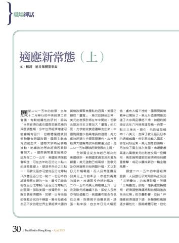 30 // Buddhist in Hong Kong . April 2015%u8077%u5834%u79aa%u8a71%u9069%u61c9%u65b0%u5e38%u614b%uff08%u4e0a%uff09%u6587%uff1a%u694a%u91d7%u3000%u65ed%u65e5%u96c6%u5718%u8463%u4e8b%u9577%u5c55%u671b%u4e8c%u3007%u4e00%u4e94%u5e74%u7684%u524d%u666f%uff0c%u53bb%u5e74%u5341%u4e8c%u6708%u8209%u884c%u7684%u4e2d%u592e%u7d93%u6fdf%u5de5%u4f5c%u6703%u8b70%uff0c%u6709%u8f03%u524d%u77bb%u6027%u7684%u7814%u5224%uff0c%u8a8d%u70ba%u300c%u4e16%u754c%u7d93%u6fdf%u4ecd%u8655%u5728%u570b%u969b%u91d1%u878d%u5371%u6a5f%u7684%u6df1%u5ea6%u8abf%u6574%u671f%uff0c%u4eca%u5e74%u4e16%u754c%u7d93%u6fdf%u589e%u901f%u53ef%u80fd%u6703%u7565%u6709%u56de%u5347%uff0c%u4f46%u7e3d%u9ad4%u5fa9%u7526%u75b2%u5f31%u614b%u52e2%u96e3%u6709%u660e%u986f%u6539%u89c0%uff0c%u570b%u969b%u91d1%u878d%u5e02%u5834%u6ce2%u52d5%u52a0%u5927%uff0c%u570b%u969b%u5927%u5b97%u5546%u54c1%u50f9%u683c%u6ce2%u52d5%uff0c%u5730%u7de3%u653f%u6cbb%u7b49%u975e%u7d93%u6fdf%u56e0%u7d20%u5f71%u97ff%u52a0%u5927%u300d%u3002%u570b%u969b%u8ca8%u5e63%u57fa%u91d1%u7d44%u7e54%u4ea6%u8a8d%u70ba%u5728%u4e8c%u3007%u4e00%u4e94%u5e74%uff0c%u7f8e%u570b%u7d93%u6fdf%u5fa9%u7526%u6703%u8f03%u4f73%uff0c%u53ef%u5728%u53bb%u5e74%u7d04%u767e%u5206%u4e4b%u4e8c%u9ede%u4e8c%u7684%u589e%u9577%u57fa%u790e%u4e0a%uff0c%u63d0%u901f%u81f3%u767e%u5206%u4e4b%u4e09%u9ede%u4e00%uff1b%u800c%u6b50%u5143%u5340%u4ea6%u53ef%u671b%u5f9e%u767e%u5206%u4e4b%u96f6%u9ede%u516b%u6539%u5584%u81f3%u767e%u5206%u4e4b%u4e00%u9ede%u4e8c%u3002%u4f46%u65e5%u672c%u7684%u7d93%u6fdf%u767c%u5c55%u5728%u65b0%u7684%u4e00%u5e74%uff0c%u6700%u591a%u53ea%u80fd%u5f98%u5f8a%u5728%u767e%u5206%u4e4b%u96f6%u9ede%u516b%u81f3%u767e%u5206%u4e4b%u96f6%u9ede%u4e5d%u7684%u5340%u9593%u3002%u5373%u9664%u7f8e%u570b%u4e00%u679d%u7368%u79c0%u5916%uff0c%u5176%u9918%u4e3b%u8981%u7d93%u6fdf%u9ad4%u7cfb%uff0c%u5982%u6b50%u3001%u65e5%u7b49%u5730%u5340%u7684%u5fa9%u7526%u6b65%u4f10%u5747%u4e0d%u7a69%u7576%u3002%u6700%u4ee4%u6295%u8cc7%u8005%u5fd0%u5fd1%u4e0d%u5b89%u7684%u662f%u4e16%u754c%u4e3b%u8981%u7d93%u6fdf%u5927%u570b%u7684%u8ca8%u5e63%u653f%u7b56%u805a%u7126%u91cd%u9ede%u5747%u8fe5%u7570%u3002%u7f8e%u570b%u6b63%u64ec%u5f9e%u300c%u91cf%u5bec%u300d%uff0c%u6f38%u6b21%u56de%u6b78%u5230%u6b63%u5e38%uff0c%u7f8e%u5143%u52a0%u606f%u9810%u8a08%u5c07%u5728%u5e74%u4e2d%u958b%u59cb%uff1b%u4f46%u6b50%u5143%u5340%u53ca%u65e5%u672c%u6b63%u8981%u52a0%u5927%u300c%u91cf%u5bec%u300d%u7684%u529b%u5ea6%uff0c%u529b%u6c42%u80fd%u5f9e%u8870%u9000%u908a%u7de3%u8d70%u51fa%u4f86%u3002%u4e2d%u570b%u5247%u8abf%u6574%u4ee5%u524d%u9ad8%u589e%u9577%u7684%u901f%u5ea6%uff0c%u52aa%u529b%u4fdd%u6301%u7d93%u6fdf%u5728%u5408%u7406%u5340%u9593%u904b%u4f5c%u3002%u6545%u4e16%u754c%u7d93%u6fdf%u5927%u570b%u8ca8%u5e63%u653f%u7b56%u7684%u56b4%u91cd%u5206%u6b67%uff0c%u662f%u4e8c%u3007%u4e00%u4e94%u5e74%u74b0%u7403%u7d93%u6fdf%u767c%u5c55%u7684%u4e3b%u8abf%u3002%u5168%u7403%u8cc7%u91d1%u5f9e%u53bb%u5e74%u8d77%u5df2%u6f38%u6b21%u5411%u7f8e%u570b%u50be%u659c%uff0c%u65b0%u8208%u570b%u5bb6%u8cc7%u91d1%u6d41%u5931%u6700%u70ba%u56b4%u91cd%uff1b%u7f8e%u5143%u5f37%u52e2%u5df2%u6210%u6c23%u5019%uff0c%u5c0d%u6b50%u5143%u53ca%u4e9e%u6d32%u8ca8%u5e63%u5747%u6709%u660e%u986f%u5347%u5e45%uff0c%u5c24%u4ee5%u5c0d%u65e5%u5143%u5347%u5e45%u6700%u751a%uff1b%u800c%u4eba%u6c11%u5e63%u532f%u50f9%u53d7%u5230%u7f8e%u5143%u4e0a%u5347%u7684%u727d%u5f15%uff0c%u4ea6%u8655%u65bc%u5169%u96e3%u7684%u5883%u5730%u3002%u5e02%u5834%u773e%u591a%u5206%u6790%u5747%u8a8d%u70ba%uff0c%u4e8c%u3007%u4e00%u4e94%u5e74%u5167%u7f8e%u5143%u5c07%u7e7c%u7e8c%u4e0a%u5347%uff0c%u65e5%u5143%u53ca%u6b50%u5143%u5c07%u7e7c%u7e8c%u4e0b%u8dcc%uff0c%u5373%u4f7f%u4eba%u6c11%u5e63%u4ea6%u6709%u8cb6%u503c%u58d3%u529b%uff0c%u4fc4%u570b%u76e7%u5e03%u80fd%u5426%u5728%u4f4e%u4f4d%u4f01%u7a69%uff0c%u5247%u8981%u8996%u4e4e%u6cb9%u50f9%u8868%u73fe%u3002%u8a87%u5f35%u4e00%u9ede%u4f86%u8aaa%uff0c%u81ea%u53bb%u5e74%u65e5%u5143%u5927%u5e45%u8cb6%u503c%uff0c%u76e7%u5e03%u5927%u5e45%u4e0b%u632b%u6642%uff0c%u570b%u969b%u9593%u8ca8%u5e63%u6230%u722d%u5df2%u958b%u59cb%u4e86%u3002%u7f8e%u5143%u5347%u503c%u66f4%u9593%u63a5%u52a0%u901f%u4e86%u5927%u5b97%u5546%u54c1%u50f9%u683c%u4e0b%u6ed1%uff0c%u5982%u7d10%u7d04%u671f%u6cb9%u5f9e%u53bb%u5e74%u516d%u6708%u6642%u9ad8%u9054%u6bcf%u6876%u4e00%u767e%u96f6%u4e00%u9ede%u4e09%u4e09%u7f8e%u5143%u3002%u73fe%u5728%uff0c%u5df2%u8dcc%u7834%u6bcf%u6876%u56db%u5341%u516b%u7f8e%u5143%uff0c%u52a0%u6df1%u4e86%u6b50%u5143%u5340%u53ca%u65e5%u672c%u7684%u901a%u7e2e%u5a01%u8105%u3002%u4f46%u5c0d%u539f%u6cb9%u8f38%u5165%u570b%u5bb6%uff0c%u537b%u662f%u5229%u597d%u56e0%u7d20%u3002%u7f8e%u5143%u52a0%u606f%u7684%u9810%u671f%uff0c%u518d%u52a0%u5feb%u4e86%u8cc7%u91d1%u6d41%u5165%u7f8e%u570b%u3002%u5e02%u5834%u6182%u616e%u9ad8%u9054%u4e5d%u842c%u5104%u7f8e%u5143%u7684%u5229%u5dee%u4ea4%u6613%u4e00%u65e6%u8f49%u5411%uff0c%u9ad8%u606f%u8ca8%u5e63%u570b%u5bb6%u7684%u7d93%u6fdf%u5c07%u53d7%u5230%u56b4%u91cd%u885d%u64ca%uff0c%u6216%u8db3%u4ee5%u91c0%u6210%u65b0%u7684%u4e00%u8f2a%u91d1%u878d%u98a8%u66b4%u3002%u5c55%u671b%u4e8c%u3007%u4e00%u4e94%u5e74%u7684%u4e2d%u570b%u7d93%u6fdf%u767c%u5c55%uff0c%u4eba%u6c11%u9280%u884c%u7814%u7a76%u5c40%u8a8d%u70ba%u6b63%u53d7%u5230%u300c%u4e09%u671f%u758a%u52a0%u300d%u7684%u6548%u61c9%u5f71%u97ff%u3002%u6240%u8b02%u300c%u4e09%u671f%u758a%u52a0%u300d%u5373%u6307%u300c%u589e%u9577%u901f%u5ea6%u63db%u6a94%u671f%uff0c%u7d93%u6fdf%u8abf%u6574%u9663%u75db%u671f%u548c%u524d%u671f%u523a%u6fc0%u653f%u7b56%u6d88%u5316%u671f%u300d%u7684%u4ea4%u758a%u5f71%u97ff%uff0c%u4e26%u4e14%u300c%u4f34%u96a8%u8457%u7d93%u6fdf%u589e%u901f%u4e0b%u8abf%uff0c%u5404%u985e%u96b1%u6027%u98a8%u96aa%u9010%u6b65%u986f%u6027%u5316%uff0c%u98a8%u96aa%u7e3d%u9ad4%u53ef%u63a7%uff0c%u4f46%u5316