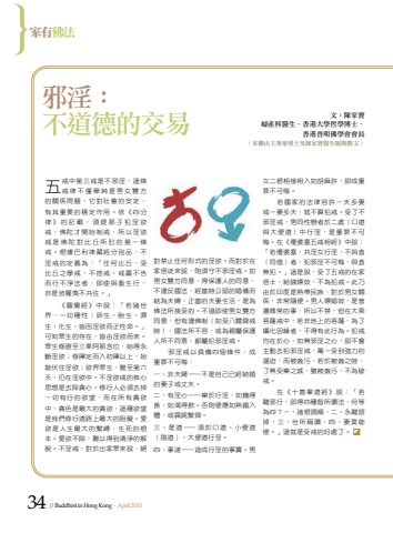 34 // Buddhist in Hong Kong . April 2015%u5bb6%u6709%u4f5b%u6cd5%u90aa%u6deb%uff1a%u4e0d%u9053%u5fb7%u7684%u4ea4%u6613 %u6587%uff1a%u9673%u5bb6%u5bf6%u5a66%u7522%u79d1%u91ab%u751f%u3001%u9999%u6e2f%u5927%u5b78%u54f2%u5b78%u535a%u58eb%u3001%u9999%u6e2f%u666e%u660e%u4f5b%u5b78%u6703%u6703%u9577%uff08%u672c%u6b04%u7531%u738b%u79c9%u8c6a%u535a%u58eb%u53ca%u9673%u5bb6%u5bf6%u91ab%u751f%u9694%u671f%u64b0%u6587%uff09%u4e94%u6212%u4e2d%u7b2c%u4e09%u6212%u662f%u4e0d%u90aa%u6deb%uff0c%u9019%u689d%u6212%u5f8b%u4e0d%u50c5%u55ae%u7d14%u662f%u7537%u5973%u96d9%u65b9%u7684%u95dc%u4fc2%u554f%u984c%uff0c%u5b83%u5c0d%u793e%u6703%u7684%u5b89%u5b9a%uff0c%u6709%u5176%u91cd%u8981%u7684%u7a69%u5b9a%u4f5c%u7528%u3002%u4f9d%u300a%u56db%u5206%u5f8b%u300b%u7684%u8a18%u8f09%uff0c%u9808%u63d0%u90a3%u5b50%u72af%u6deb%u6b32%u6212%uff0c%u4f5b%u9640%u624d%u958b%u59cb%u5236%u6212%uff0c%u6240%u4ee5%u6deb%u6b32%u6212%u662f%u4f5b%u9640%u5c0d%u6bd4%u4e18%u6240%u8a02%u7684%u7b2c%u4e00%u689d%u6212%u3002%u6839%u64da%u5df4%u5229%u5f8b%u85cf%u7d93%u5206%u5225%u54c1%uff0c%u4e0d%u6deb%u6212%u7684%u5b9a%u7fa9%u70ba%uff1a%u300c%u4efb%u4f55%u6bd4%u4e18%uff0c%u53d7%u6bd4%u4e18%u4e4b%u5b78%u6212%uff0c%u4e0d%u6368%u6212%u3001%u6212%u7fb8%u4e0d%u544a%u800c%u884c%u4e0d%u6de8%u6cd5%u8005%uff0c%u5373%u4f7f%u8207%u755c%u751f%u884c%uff0c%u4ea6%u662f%u6ce2%u7f85%u5937%u4e0d%u5171%u4f4f%u3002%u300d%u300a%u5713%u89ba%u7d93%u300b%u4e2d%u8aaa%uff1a%u300c%u82e5%u8af8%u4e16%u754c%uff0c%u4e00%u5207%u7a2e%u6027%uff1b%u5375%u751f%u3001%u80ce%u751f%u3001%u6fd5%u751f%u3001%u5316%u751f%u3001%u7686%u56e0%u6deb%u6b32%u800c%u6b63%u6027%u547d%u3002%u300d%u53ef%u77e5%u773e%u751f%u7684%u5b58%u5728%uff0c%u7686%u7531%u6deb%u6b32%u800c%u4f86%u3002%u773e%u751f%u4fee%u8b49%u81f3%u4e09%u679c%u963f%u90a3%u542b%u4f4d%uff0c%u59cb%u5f97%u6c38%u65b7%u6deb%u6b32%uff1b%u4fee%u79aa%u5b9a%u800c%u5165%u521d%u79aa%u4ee5%u4e0a%uff0c%u59cb%u80fd%u4f0f%u4f4f%u6deb%u6b32%uff1b%u6b32%u754c%u773e%u751f%uff0c%u96d6%u81f3%u7b2c%u516d%u5929%uff0c%u4ecd%u5728%u6deb%u6b32%u4e2d%u3002%u4e0d%u6deb%u6b32%u6212%u7684%u6838%u5fc3%u601d%u60f3%u662f%u53bb%u9664%u8caa%u5fc3%u3002%u4fee%u884c%u4eba%u5fc5%u9808%u53bb%u6389%u4e00%u5207%u6709%u884c%u7684%u6b32%u671b%uff0c%u800c%u5728%u6240%u6709%u8caa%u6b32%u4e2d%uff0c%u8caa%u8272%u662f%u6700%u5927%u7684%u8caa%u6b32%uff0c%u9019%u7a2e%u6b32%u671b%u662f%u6211%u5011%u4fee%u884c%u9053%u8def%u4e0a%u6700%u5927%u7684%u963b%u7919%u3002%u611b%u6b32%u662f%u4eba%u751f%u6700%u5927%u7684%u7e6b%u7e1b%uff0c%u751f%u6b7b%u7684%u6839%u672c%u3002%u611b%u6b32%u4e0d%u9664%uff0c%u96e3%u4ee5%u5f97%u5230%u6e05%u6de8%u7684%u89e3%u812b%u3002%u4e0d%u6deb%u6212%uff0c%u5c0d%u65bc%u51fa%u5bb6%u773e%u4f86%u8aaa%uff0c%u7d55%u5c0d%u7981%u6b62%u4efb%u4f55%u5f62%u5f0f%u7684%u6deb%u6b32%u3002%u800c%u5c0d%u65bc%u5728%u5bb6%u4fe1%u5f92%u4f86%u8aaa%uff0c%u5247%u9808%u5b88%u4e0d%u90aa%u6deb%u6212%u3002%u5982%u7537%u5973%u96d9%u65b9%u540c%u610f%uff0c%u5f97%u4fdd%u8b77%u4eba%u7684%u540c%u610f%uff0c%u4e0d%u9055%u53cd%u570b%u6cd5%uff0c%u7d93%u7576%u6642%u516c%u8a8d%u7684%u5a5a%u5100%u800c%u7d50%u70ba%u592b%u5a66%uff0c%u6b63%u7576%u7684%u592b%u59bb%u751f%u6d3b%uff0c%u662f%u70ba%u4f5b%u6cd5%u6240%u63a5%u53d7%u7684%u3002%u4e0d%u904e%u5373%u4f7f%u7537%u5973%u96d9%u65b9%u540c%u610f%uff0c%u4f46%u6709%u9055%u4f5b%u5236%uff08%u5982%u53d7%u516b%u95dc%u9f4b%u6212%u6642%uff09%uff0c%u570b%u6cd5%u6240%u4e0d%u5bb9%uff0c%u6216%u70ba%u89aa%u5c6c%u4fdd%u8b77%u4eba%u6240%u4e0d%u540c%u610f%uff0c%u90fd%u5c6c%u72af%u90aa%u6deb%u6212%u3002%u90aa%u6deb%u6212%u4ee5%u5177%u5099%u56db%u500b%u689d%u4ef6%uff0c%u6210%u91cd%u7f6a%u4e0d%u53ef%u6094%uff1a%u4e00%u3001%u975e%u592b%u5a66%u2014%u4e0d%u662f%u81ea%u5df1%u5df2%u7d93%u7d50%u5a5a%u7684%u59bb%u5b50%u6216%u4e08%u592b%u3002%u4e8c%u3001%u6709%u6deb%u5fc3%u2014%u6a02%u65bc%u884c%u6deb%uff0c%u5982%u9951%u5f97%u98df%uff0c%u5982%u6e34%u5f97%u98f2%u3002%u5426%u5247%u4fbf%u61c9%u5982%u71b1%u9435%u5165%u9ad4%uff0c%u6216%u8150%u5c4d%u7e6b%u9838%u3002%u4e09%u3001%u662f%u9053%u2014%u9808%u65bc%u53e3%u9053%u3001%u5c0f%u4fbf%u9053%uff08%u9670%u9053%uff09%u3001%u5927%u4fbf%u9053%u884c%u6deb%u3002%u56db%u3001%u4e8b%u9042%u2014%u9020%u6210%u884c%u6deb%u7684%u4e8b%u5be6%u3002%u7537%u5973%u4e8c%u6839%u76f8%u63a5%u76f8%u5165%u5982%u80e1%u9ebb%u8a31%uff0c%u5373%u6210%u91cd%u7f6a%u4e0d%u53ef%u6094%u3002%u82e5%u570b%u5bb6%u7684%u6cd5%u5f8b%u5bb9%u8a31%u4e00%u592b%u591a%u59bb%u6216%u4e00%u59bb%u591a%u592b%uff0c%u5c31%u4e0d%u7b97%u72af%u6212%u3002%u53d7%u4e86%u4e0d%u90aa%u6deb%u6212%uff0c%u7537%u540c%u6027%u6200%u8005%u65bc%u4e8c%u8655%uff08%u53e3%u9053%u8207%u5927%u4fbf%u9053%uff09%u4e2d%u884c%u6deb%uff0c%u662f%u91cd%u7f6a%u4e0d%u53ef%u6094%u3002%u5728%u300a%u512a%u5a46%u585e%u4e94%u6212%u76f8%u7d93%u300b%u4e2d%u8aaa%uff1a%u300c%u82e5%u512a%u5a46%u585e%uff0c%u5171%u6deb%u5973%u884c%u6deb%uff0c%u4e0d%u8207%u76f4%uff08%u540c%u503c%uff09%u8005%uff0c%u72af%u90aa%u6deb%u4e0d%u53ef%u6094%uff0c%u8207%u76f4%u7121%u72af%u3002%u300d%u9019%u662f%u8aaa%uff0c%u53d7%u4e86%u4e94%u6212%u7684%u5728%u5bb6%u4fe1%u58eb%uff0c%u7d66%u9322%u5ad6%u5993%uff0c%u4e0d%u70ba%u72af%u6212%u3002%u6b64%u4e43%u7531%u65bc%u5370%u5ea6%u662f%u71b1%u5e36%u6c11%u65cf%uff0c%u5c0d%u65bc%u7537%u5973%u95dc%u4fc2%uff0c%u975e%u5e38%u96a8%u4fbf%u3002%u7537%u4eba%u5ad6%u5a3c%u5993%uff0c%u662f%u666e%u904d%u5c0b%u5e38%u7684%u4e8b%uff0c%u6240%u4ee5%u4e0d%u7981%uff0c%u4f46%u5728%u5927%u4e58%u83e9%u85a9%u6212%u4e2d%uff0c%u82e5%u975e%u5730%u4e0a%u7684%u83e9%u85a9%uff0c%u70ba%u4e86%u651d%u5316%u56e0%u7de3%u8005%uff0c%u4e0d%u5f97%u6709%u6b64%u884c%u70ba%u3002%u72af%u6212%u5747%u5728%u65bc%u5fc3%uff0c%u5982%u7121%u90aa%u6deb%u4e4b%u5fc3%uff0c%u5373%u4e0d%u6703%u4e3b%u52d5%u53bb%u72af%u90aa%u6deb%u6212%uff0c%u842c%u4e00%u53d7%u5230%u5f37%u529b%u7684%u903c%u8feb%uff0c%u800c%u88ab%u59e6%u6c61%uff0c%u82e5%u65bc%u88ab%u59e6%u4e4b%u6642%uff0c%u4e86%u7121%u53d7%u6a02%u4e4b%u611f%uff0c%u96d6%u88ab%u59e6%u6c61%uff0c%u4e0d%u70ba%u7834%u6212%u3002%u5728%u300a%u5341%u5584%u696d%u9053%u7d93%u300b%u8aaa%uff1a%u300c%u82e5%u96e2%u90aa%u884c%uff0c%u5373%u5f97%u56db%