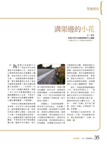 %u9999%u6e2f%u4f5b%u6559 . %u4e8c%u25cb%u4e00%u4e94%u5e74%u56db%u6708 // 35 %u6587%uff1a%u7530%u82b3%u9999%u6e2f%u5927%u5b78%u884c%u70ba%u5065%u5eb7%u6559%u7814%u4e2d%u5fc3%u8b1b%u5e2b%uff08%u672c%u6b04%u7531%u7530%u82b3%u5973%u58eb%u53ca%u8d10%u660e%u6703%u9694%u671f%u64b0%u6587%uff09%u751f%u6b7b%u76f8%u5b89%u300c%u70ba%u751a%u9ebc%u751f%u547d%u9019%u9ebc%u4e0d%u516c%u5e73%uff1f%u6709%u4e9b%u82b1%u53ef%u4ee5%u6210%u70ba%u6eab%u5ba4%u4e2d%u53d7%u4fdd%u8b77%u7684%u5c0f%u82b1%uff0c%u6709%u4e9b%u82b1%u53ef%u4ee5%u6f02%u6f02%u4eae%u4eae%u7684%u63d2%u5728%u82b1%u74f6%u88cf%u4f9b%u4eba%u89c0%u8cde%uff0c%u6709%u4e9b%u82b1%u5c31%u5728%u5927%u8349%u576a%u4e0a%u81ea%u7531%u5730%u751f%u9577%u2026%u2026%u70ba%u751a%u9ebc%u9019%u68f5%u82b1%u537b%u9019%u9ebc%u4e0b%u8ce4%uff0c%u8981%u5728%u6e9d%u6e20%u908a%u6399%u624e%u6c42%u5b58%uff1f%u9019%u6735%u82b1%u6703%u554f%u70ba%u751a%u9ebc%u55ce%uff1f%u9019%u82b1%u6d3b%u8457%u7684%u610f%u7fa9%u53c8%u662f%u751a%u9ebc%uff1f%u300d%u4e00%u6b21%u963f%u6b23%uff08%u5316%u540d%uff09%u5728%u884c%u4eba%u8def%u908a%u7684%u6e9d%u6e20%u65c1%uff0c%u767c%u73fe%u4e00%u6735%u5c0f%u82b1%u6b63%u6cbf%u8457%u6e9d%u6e20%u908a%u72f9%u5c0f%u7684%u7e2b%u9699%u8271%u96e3%u5730%u5f80%u4e0a%u751f%u9577%uff0c%u4e0d%u7981%u5446%u4e86%u773c%uff0c%u9ed8%u9ed8%u5730%u7ad9%u5728%u8def%u908a%u99d0%u8db3%u89c0%u770b%uff0c%u5fc3%u88cf%u53cd%u8986%u601d%u91cf%u8457%u4e00%u5927%u5806%u554f%u984c%u3002%u963f%u6b23%u7684%u7236%u89aa%u56e0%u5099%u53d7%u764c%u75c5%u7684%u75db%u82e6%u714e%u71ac%uff0c%u5728%u5973%u5152%u4e2d%u4e03%u90a3%u5e74%u81ea%u6bba%u96e2%u4e16%u3002%u7e31%u7136%u61f7%u8457%u60b2%u75db%u7684%u5fc3%u60c5%uff0c%u963f%u6b23%u4ecd%u7136%u52aa%u529b%u61c9%u4ed8%u516c%u958b%u8a66%uff0c%u4e26%u6210%u529f%u8003%u5165%u5927%u5b78%u3002%u5916%u8868%u5805%u5f37%u7406%u6027%u7684%u963f%u6b23%uff0c%u5167%u5fc3%u4e00%u76f4%u58d3%u6291%u8457%u5c0d%u7236%u89aa%u7684%u601d%u5ff5%u8207%u96e3%u904e%uff0c%u4e0d%u5bb9%u8a31%u81ea%u5df1%u6709%u534a%u9ede%u6d41%u9732%u54c0%u50b7%u4e4b%u60c5%u3002%u8166%u6d77%u4e2d%u5145%u65a5%u8457%u7684%uff0c%u5c31%u53ea%u6709%u7236%u89aa%u6240%u7d93%u6b77%u7684%u75db%u82e6%uff0c%u548c%u7576%u5929%u96e2%u53bb%u7684%u756b%u9762%u3002%u5c0d%u65bc%u751f%u547d%uff0c%u5979%u66f4%u611f%u5230%u56f0%u60d1%u548c%u8cea%u7591%uff1a%u751f%u547d%u70ba%u751a%u9ebc%u6703%u5145%u6eff%u82e6%u96e3%u3001%u4e0d%u516c%uff1f%u82e5%u751f%u547d%u7684%u7d50%u679c%u53ea%u662f%u6b7b%u4ea1%uff0c%u90a3%u9ebc%u7576%u4e0b%u6d3b%u8457%u7684%u9019%u4e00%u523b%u53c8%u662f%u70ba%u4e86%u751a%u9ebc%uff1f%u54c0%u50b7%u8def%u4e0a%uff0c%u5728%u8dcc%u8dcc%u78b0%u78b0%u9593%uff0c%u963f%u6b23%u52aa%u529b%u5730%u5411%u524d%u8d70%uff0c%u4e26%u7d93%u9a57%u4e86%u5f88%u591a%u7684%u5b78%u7fd2%uff1a%u539f%u4f86%u773c%u6dda%u4e0d%u4ee3%u8868%u8edf%u5f31%uff0c%u800c%u662f%u5c0d%u7236%u89aa%u611b%u7684%u8868%u9054%uff1b%u63a5%u7d0d%u81ea%u5df1%u7684%u773c%u6dda%uff0c%u7b49%u65bc%u63a5%u7d0d%u81ea%u5df1%u4e5f%u53ef%u4ee5%u6709%u8106%u5f31%u53d7%u50b7%u7684%u90e8%u5206%uff1b%u7576%u5bb9%u8a31%u81ea%u5df1%u611f%u53d7%u60b2%u50b7%uff0c%u5bb9%u8a31%u773c%u6dda%u6d17%u6ecc%u5167%u5fc3%u7684%u54c0%u75db%u6642%uff0c%u56de%u61b6%u88cf%u53ef%u627e%u5230%u7684%u4e0d%u518d%u53ea%u662f%u75db%u82e6%u7684%u5206%u96e2%uff0c%u66f4%u5c0b%u56de%u904e%u53bb%u4e45%u9055%u4e86%u7684%u5feb%u6a02%u7684%u7247%u6bb5%uff0c%u548c%u5145%u6eff%u611b%u7684%u611f%u89ba%uff1b%u9019%u4e9b%u5c0d%u81ea%u5df1%u7684%u63a5%u7d0d%u548c%u5c0d%u7236%u89aa%u611b%u7684%u611f%u89ba%uff0c%u5c07%u672c%u4f86%u7e43%u7dca%u6613%u788e%u7684%u5167%u5fc3%u9010%u6f38%u5730%u8b8a%u5f97%u66f4%u67d4%u8edf%u3001%u66f4%u5805%u97cc%u3002%u9762%u5c0d%u751f%u547d%u548c%u6b7b%u4ea1%uff0c%u963f%u6b23%u4ecd%u7136%u6709%u5f88%u591a%u672a%u80fd%u89e3%u7b54%u7684%u7591%u60d1%uff0c%u4f46%u5979%u9858%u610f%u5728%u4eba%u751f%u8def%u4e0a%u7e7c%u7e8c%u63a2%u7d22%u3001%u767c%u6398%u3002%u9019%u5929%uff0c%u56de%u60f3%u8d77%u90a3%u68f5%u6e9d%u6e20%u908a%u7684%u5c0f%u82b1%uff0c%u963f%u6b23%u7a81%u7136%u660e%u767d%u4e86%uff1a%u300c%u6216%u8a31%uff0c%u90a3%u82b1%u4e26%u4e0d%u6703%u554f%u70ba%u751a%u9ebc%uff0c%u4e5f%u4e0d%u6703%u5c0d%u751f%u547d%u7684%u4e0d%u516c%u5e73%u800c%u81ea%u6028%u81ea%u827e%u3002%u7260%u53ea%u6703%u52aa%u529b%u5730%u671d%u967d%u5149%u8655%u751f%u9577%uff0c%u76e1%u60c5%u5730%u5438%u53d6%u6ce5%u571f%u88cf%u7684%u6c34%u5206%u3002 %u6216%u8a31%u2026%u2026%u6216%u8a31%u300e%u6d3b%u8457%u300f%u4e26%u4e0d%u70ba%u4e86%u751a%u9ebc%uff0c%u56e0%u70ba%u300e%u6d3b%u8457%u300f%u672c%u8eab%u5c31%u662f%u300e%u6d3b%u8457%u300f%u7684%u610f%u7fa9%u3002%u300d%u963f%u6b23%u9732%u51fa%u4e86%u7531%u8877%u7684%u7b11%u5bb9%uff0c%u6df1%u6df1%u5730%u5438%u4e00%u53e3%u6c23%uff0c%u7136%u5f8c%u7de9%u7de9%u5730%u547c%u51fa%uff0c%u771f%u6b63%u611f%u53d7%u5230%u7576%u4e0b%u300c%u6d3b%u8457%u300d%u7684%u611f%u89ba%u3002%u6e9d%u6e20%u908a%u7684%u5c0f%u82b1