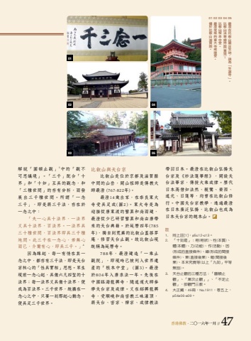 %u9999%u6e2f%u4f5b%u6559 . %u4e8c%u25cb%u4e00%u516d%u5e74%u4e00%u6708 // 47 %u5e36%u56de%u65e5%u672c%u3002%u6700%u6f84%u5728%u6bd4%u53e1%u5c71%u5f18%u63da%u5929%u53f0%u5b97%u53ca%u300a%u5999%u6cd5%u84ee%u83ef%u7d93%u300b%uff0c%u958b%u8a2d%u5929%u53f0%u6cd5%u83ef%u5b97%uff0c%u50b3%u6388%u5927%u4e58%u6212%u5f8b%u3002%u6b77%u4ee3%u65e5%u672c%u9ad8%u50e7%u5982%u6cd5%u7136%u3001%u89aa%u9e1e%u3001%u69ae%u897f%u3001%u9053%u5143%u3001%u65e5%u84ee%u7b49%uff0c%u5747%u66fe%u5728%u6bd4%u53e1%u5c71%u4fee%u884c%u3002%u4e2d%u570b%u5929%u53f0%u5b97%u6559%u5b78%uff0c%u900f%u904e%u6700%u6f84%u5728%u65e5%u672c%u5ee3%u6cdb%u5f18%u63da%uff0c%u6bd4%u53e1%u5c71%u4e5f%u6210%u70ba%u65e5%u672c%u5929%u53f0%u5b97%u7684%u7e3d%u672c%u5c71%u3002%u8a3b1.%u0009 %u540c%u4e0a%u8a3b[1]%uff0cp5c12-c13%u30022.%u0009 %u300c%u5341%u5982%u662f%u300d%uff1a%u76f8(%u76f8%u72c0)%u3001%u6027(%u672c%u8cea)%u3001%u9ad4(%u672c%u9ad4)%u3001%u529b(%u529f%u80fd)%u3001%u4f5c(%u6d3b%u52d5)%u3001%u56e0(%u5f62%u6210%u7684%u76f4%u63a5%u689d%u4ef6)%u3001%u7de3(%u5f62%u6210%u7684%u9593%u63a5%u689d%u4ef6)%u3001%u679c(%u76f4%u63a5%u5f8c%u679c)%u3001%u5831(%u9593%u63a5%u5f8c%u679c)%u3001%u672c%u672b%u7a76%u7adf%u7b49(%u4ee5%u4e0a%u300c%u4e5d%u5982%u300d%u5e73%u7b49%u7121%u5225)%u30023.%u0009 %u5929%u53f0%u6b62%u89c0%u7684%u4e09%u7a2e%u65b9%u6cd5%uff1a%u300c%u5713%u9813%u6b62%u89c0%u300d%u3001%u300c%u6f38%u6b21%u6b62%u89c0%u300d%u300d%u3001%u300c%u4e0d%u5b9a%u6b62%u89c0%u300d%uff0c%u5373%u89c0%u9580%u4e09%u6559%u30024.%u0009 %u5927%u6b63%u85cf%uff0c46%u518a%uff0cNo.1911%uff0c%u5377%u4e94%u4e0a%uff0cp54a06-a09%u3002%u6bd4%u53e1%u5c71%u8207%u5929%u53f0%u5b97%u6bd4%u53e1%u5c71%u662f%u4f4d%u65bc%u4eac%u90fd%u53ca%u6ecb%u8cc0%u7e23%u4e2d%u9593%u7684%u5c71%u5cb3%uff0c%u958b%u5c71%u7956%u5e2b%u662f%u50b3%u6559%u5927%u5e2b%u6700%u6f84 (767-822%u5e74)%u3002%u6700%u6f8414%u6b72%u51fa%u5bb6%uff0c%u5728%u5948%u826f%u6771%u5927%u5bfa%u53d7%u5177%u8db3%u6212(%u57162)%u3002%u6771%u5927%u5bfa%u662f%u70ba%u8fce%u63a5%u5f9e%u5510%u6771%u6e21%u7684%u9452%u771f%u548c%u5c1a%u800c%u5efa%uff0c%u6700%u6f84%u5f9e%u5c11%u5df2%u7814%u7fd2%u9452%u771f%u548c%u5c1a%u7531%u5510%u5e36%u4f86%u7684%u5929%u53f0%u5178%u7c4d%u3002%u65bc%u5ef6%u66c6%u56db%u5e74(785%u5e74)%uff0c%u7368%u81ea%u5230%u8352%u856a%u7684%u6bd4%u53e1%u5c71%u84cb%u642d%u8349%u5eb5%uff0c%u4fee%u7fd2%u5929%u53f0%u6b62%u89c0%u3002%u6545%u6bd4%u53e1%u5c71%u73fe%u7d71%u7a31%u70ba%u5ef6%u66c6%u5bfa%u3002788%u5e74%uff0c%u6700%u6f84%u5efa%u9020%u300c%u4e00%u4e58%u6b62%u89c0%u9662%u300d%uff0c%u5373%u73fe%u6642%u5df2%u88ab%u5217%u5165%u4e16%u754c%u907a%u7522%u7684%u300c%u6839%u672c%u4e2d%u5802%u300d (%u57163)%u3002%u6700%u6f84%u65bc804%u5e74%u5165%u5510%u6c42%u6cd5%u4e00%u5e74%u3002%u5148%u5f8c%u5728%u4e2d%u570b%u81e8%u6d77%u9f8d%u8208%u5bfa%uff0c%u96a8%u9053%u9083%u5927%u5e2b%u53c3%u5b78%u5929%u53f0%u5b97%u53ca%u6212%u5f8b%u3002%u53c8%u5728%u7d39%u8208%u9f8d%u8208%u5bfa%uff0c%u53d7%u9806%u66c9%u548c%u5c1a%u5bc6%u6559%u4e09%u6627%u704c%u9802%uff0c%u5c07%u5929%u53f0%u3001%u5bc6%u5b97%u3001%u79aa%u5b97%u3001%u6212%u5f8b%u6559%u6cd5%u89e3%u8aaa%u300c%u5713%u9813%u6b62%u89c0%u300d3%u4e2d%u7684%u300c%u89c0%u4e0d%u53ef%u601d%u8b70%u5883%u300d%u3002%u300c%u4e09%u5343%u300d%u914d%u5408%u300c%u5341%u754c%u300d%u548c%u300c%u5341%u5982%u300d%u4e92%u5177%u7684%u89c0%u5ff5%uff0c%u548c%u300c%u4e09%u7a2e%u4e16%u9593%u300d%u7684%u5b58%u6709%u5206%u6790%uff0c%u800c%u767c%u5c55%u51fa%u4e09%u5343%u7a2e%u4e16%u9593%u3002%u6240%u8b02%u300c%u4e00%u5ff5%u4e09%u5343%u300d%uff0c%u5373%u662f%u5c07%u4e09%u5343%u6cd5%uff0c%u5b58%u5728%u65bc%u4e00%u5ff5%u4e4b%u4e2d%uff1a%u300c%u592b%u4e00%u5fc3%u5177%u5341%u6cd5%u754c%uff0c%u4e00%u6cd5%u754c%u53c8%u5177%u5341%u6cd5%u754c%uff0c%u767e%u6cd5%u754c%u3002%u4e00%u6cd5%u754c%u5177%u4e09%u5341%u7a2e%u4e16%u9593%uff0c%u767e%u6cd5%u754c%u5373%u5177%u4e09%u5343%u7a2e%u5730%u9593%u3002%u6b64%u4e09%u5343%u5728%u4e00%u5ff5%u5fc3%uff0c%u82e5%u7121%u5fc3%u800c%u5df2%uff0c%u4ecb%u723e%u6709%u5fc3%uff0c%u5373%u5177%u4e09%u5343%u3002%u300d4%u56e0%u70ba%u7de3%u8d77%uff0c%u6bcf%u4e00%u6709%u60c5%u5728%u5176%u4e00%u5ff5%u4e4b%u4e2d%uff0c%u90fd%u5b58%u6709%u4e09%u5343%u6cd5%uff0c%u5373%u662f%u5929%u53f0%u5b97%u6838%u5fc3%u7684%u300c%u6027%u5177%u5be6%u76f8%u300d%u601d%u60f3%u3002%u773e%u751f%u73fe%u524d%u4e00%u5ff5%u5fc3%u8d77%uff0c%u5177%u5099%u516d%u51e1%u56db%u8056%u7684%u5341%u6cd5%u754c%uff1b%u6bcf%u4e00%u6cd5%u754c%u53c8%u5177%u5099%u5341%u6cd5%u754c%uff0c%u4fbf%u6210%u70ba%u767e%u6cd5%u754c%u3002%u4e09%u5343%u4e16%u754c%uff0c%u7d71%u651d%u5728%u4e00%u5ff5%u5fc3%u4e4b%u4e2d%uff0c%u53ea%u8981%u4e00%u524e%u90a3%u8d77%u5fc3%u52d5%u5ff5%uff0c%u4fbf%u5177%u8db3%u4e09%u5343%u4e16%u754c%u3002010302050405%u6700%u6f84%u5728%u6bd4%u53e1%u5c71%u9e93%u51fa%u751f%u5730%uff0c%u73fe%u70ba%u300c%u751f%u6e90%u5bfa%u300d%u300204%u6bd4%u53e1%u5c71%u6cd5%u83ef%u7e3d%u6301%u9662(%u6771%u5854)%u300203%u6bd4%u53e1%u5c71%u6839%u672c%u4e2d%u5802%u300202%u6700%u6f84%u53d7%u6212%u7684%u6771%u5927%u5bfa%u6212%u58c7%u5802%u300201%u651d%u65bc%u6bd4%u53e1%u5c71%u6ecb%u8cc0%u9662%u3002