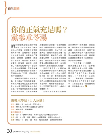 30 // Buddhist in Hong Kong . December 2016%u9ee8%u53c3%u672e%u82d3%u6e6f%uff081 %u4eba%u5206%u91cf%uff09%u6750%u6599 : %u9ee8%u53c312%u514b%uff0c%u767d%u672e9%u514b%uff0c%u832f%u82d39%u514b%u3002%u88fd%u6cd5%uff1a%u6750%u6599%u653e%u5165%u6c34%u4e2d%u716e60%u5206%u9418%u5f8c%u5373%u53ef%u98f2%u7528%u3002%u529f%u6548%uff1a%u88dc%u4e2d%u76ca%u6c23%uff0c%u5065%u813e%u990a%u80c3%u3002%u85e5%u6750%u7642%u6548%u5206%u6790%uff1a%u9ee8%u53c3%uff1a%u7518%u3001%u5e73%uff0c%u6b78%u813e%u3001%u80ba%u7d93%uff0c%u6709%u88dc%u4e2d%u76ca%u6c23%uff0c%u751f%u6d25%u990a%u8840%u7684%u529f%u6548%u3002%u767d%u672e%uff1a%u7518%u3001%u82e6%u3001%u6eab%uff0c%u6b78%u813e%u3001%u80c3%u7d93%uff0c%u6709%u88dc%u6c23%u5065%u813e%uff0c%u71e5%u6fd5%u5229%u6c34%u7684%u529f%u6548%u3002%u832f%u82d3%uff1a%u7518%u6de1%u3001%u5e73%uff0c%u6b78%u5fc3%u3001%u813e%u3001%u814e%u7d93%uff0c%u6709%u5229%u6c34%u6ef2%u6fd5%uff0c%u5065%u813e%u5b89%u795e%u7684%u529f%u6548%u3002%u660e%u4ee3%u5fa1%u91ab%u9f94%u5ef7%u8ce2%u51fa%u8eab%u65bc%u4e2d%u91ab%u4e16%u5bb6%uff0c%u5728%u4eac%u57ce%u4eab%u6709%u300c%u91ab%u6797%u72c0%u5143%u300d%u7684%u76db%u8b7d%uff0c%u4ed6%u628a%u990a%u751f%u4e4b%u9053%u6b78%u7d0d%u70ba%u5341%u4e00%u689d%uff0c%u8a00%u7c21%u610f%u8cc5%uff0c%u662f%u544a%u8aa1%u4e16%u4eba%u7684%u91d1%u7389%u826f%u8a00%uff0c%u5176%u8981%u9ede%u70ba%u300c%u8584%u6ecb%u5473%uff0c%u7701%u601d%u616e%uff0c%u7bc0%u55dc%u617e%uff0c%u6212%u559c%u6012%uff0c%u60dc%u5143%u6c23%uff0c%u7c21%u8a00%u8a9e%uff0c%u8f15%u5f97%u5931%uff0c%u7834%u6182%u6cae%uff0c%u9664%u5984%u60f3%uff0c%u9060%u597d%u60e1%uff0c%u6536%u8996%u807d%u300d%u3002%u96d6%u7136%u77ed%u77ed%u5e7e%u5341%u5b57%uff0c%u4f46%u5728%u73fe%u4e16%u4e5f%u662f%u6709%u501f%u9452%u610f%u7fa9%uff0c%u53ef%u898b%u990a%u751f%u4fdd%u5065%u9700%u6ce8%u610f%u8d77%u5c45%u98f2%u98df%u53ca%u5fc3%u7406%u5065%u5eb7%uff0c%u4e0d%u904e%u7576%u4e2d%u7684%u300c%u5143%u6c23%u300d%u662f%u6307%u751a%u9ebc%u5462%uff1f%u5b83%u91cd%u8981%u55ce%uff1f%u4e2d%u91ab%u8a8d%u70ba%u5143%u6c23%u662f%u4eba%u7684%u5148%u5929%u4e4b%u6c23%uff0c%u662f%u4eba%u8cf4%u4ee5%u751f%u5b58%u7684%u7269%u8cea%u57fa%u790e%uff0c%u6709%u7dad%u6301%u4eba%u9ad4%u6b63%u5e38%u751f%u9577%u53ca%u767c%u80b2%u7684%u4f5c%u7528%u3002%u4eba%u5982%u679c%u5143%u6c23%u8db3%u5c31%u6703%u6709%u5145%u8db3%u7684%u6b63%u6c23%uff0c%u5728%u4e2d%u91ab%u4f86%u770b%u75be%u75c5%u7684%u767c%u751f%u96e2%u4e0d%u958b%u6b63%u6c23%u548c%u90aa%u6c23%uff0c%u6b63%u6c23%u80fd%u5920%u4fdd%u8b77%u8eab%u9ad4%u62b5%u6297%u5916%u90aa%u4fb5%u8972%uff0c%u5728%u751f%u75c5%u6642%u80fd%u8f14%u52a9%u4eba%u9ad4%u65e9%u65e5%u5eb7%u5fa9%uff0c%u5728%u81df%u8151%u4e0d%u5354%u8abf%u6642%u80fd%u4f5c%u51fa%u8abf%u89e3%uff0c%u6240%u4ee5%u5b83%u662f%u5341%u5206%u91cd%u8981%u7684%u3002%u8981%u7dad%u6301%u5065%u5eb7%u7684%u8eab%u9ad4%uff0c%u5c31%u8981%u9670%u967d%u5e73%u8861%uff0c%u81df%u8151%u5404%u53f8%u5176%u8077%uff0c%u6c23%u8840%u904b%u884c%u4e95%u7136%uff0c%u6240%u4ee5%u6b63%u6c23%u4e5f%u6709%u9670%u967d%u5c6c%u6027%uff0c%u4f8b%u5982%u5728%u5bd2%u51b7%u6642%u5bd2%u6c23%u5165%u4fb5%u5c31%u9700%u8981%u4eba%u9ad4%u7684%u967d%u6c23%u4f86%u6eab%u7166%uff0c%u5728%u708e%u71b1%u6642%u71e5%u90aa%u5165%u4fb5%u5c31%u9700%u8981%u9670%u6c23%u4f86%u6fe1%u990a%u3002%u82e5%u7136%u6b63%u6c23%u4e0d%u8db3%uff0c%u4eba%u9ad4%u5c31%u6703%u5931%u53bb%u62b5%u79a6%u5916%u90aa%u7684%u80fd%u529b%uff0c%u9019%u5c31%u5982%u540c%u58eb%u5175%u5728%u57ce%u7246%u4e0a%u628a%u5b88%uff0c%u5047%u5982%u58eb%u5175%u5011%u5403%u4e0d%u98fd%uff0c%u5bd0%u4e0d%u5b89%uff0c%u62ff%u6b66%u5668%u90fd%u6c92%u6c23%u529b%uff0c%u53c8%u5982%u4f55%u62b5%u79a6%u5916%u6575%u5462%uff1f%u6240%u4ee5%u6709%u4e9b%u75c5%u4eba%u53cd%u8986%u5bb9%u6613%u611f%u5192%u5c31%u662f%u56e0%u6b63%u6c23%u4e0d%u8db3%u6240%u81f4%uff0c%u525b%u628a%u90aa%u6c23%u9a45%u8d95%u51fa%u53bb%uff0c%u4e0b%u4e00%u6ce2%u90aa%u6c23%u53c8%u4e58%u865b%u800c%u5165%uff0c%u75be%u75c5%u624d%u6703%u7e8f%u7dbf%u4e0d%u4f11%u3002%u6b63%u6c23%u4e0d%u8db3%u7684%u60a3%u8005%u5f80%u5f80%u6703%u76ee%u5149%u5446%u6eef%u7121%u795e%u3001%u7cbe%u795e%u840e%u9761%u3001%u5bb9%u6613%u75b2%u5026%u3001%u8a9e%u5f31%u8072%u4f4e%u3001%u9762%u8272%u6666%u6697%u53ca%u7d93%u5e38%u611f%u5192%uff0c%u4e5f%u6703%u51fa%u73fe%u5931%u7720%u3001%u98df%u617e%u4e0d%u632f%u53ca%u4e8c%u4fbf%u7570%u5e38%u7b49%u75c7%u72c0%u3002%u9019%u6b21%u4ecb%u7d39%u7684%u6e6f%u6c34%u6709%u88dc%u6c23%u5065%u813e%u7684%u4f5c%u7528%uff0c%u9577%u671f%u670d%u7528%u8abf%u7406%u80fd%u6539%u5584%u6b63%u6c23%u4e0d%u8db3%u7684%u75c7%u72c0%uff0c%u6e1b%u5c11%u60a3%u75c5%u7684%u6a5f%u6703%u3002%u300c%u4e09%u5206%u98df%u85e5%uff0c%u4e03%u5206%u8abf%u7406%u300d%uff0c%u60f3%u8981%u8eab%u9ad4%u597d%u662f%u4e0d%u53ef%u4ee5%u53ea%u4f9d%u9760%u670d%u85e5%uff0c%u9700%u8981%u5728%u98f2%u98df%u3001%u8d77%u5c45%u3001%u904b%u52d5%u3001%u60c5%u5fd7%u5404%u65b9%u9762%u4f5c%u51fa%u5408%u7406%u7684%u8abf%u6574%u3002%u6c11%u9593%u4fd7%u8a9e%u300c%u98ef%u98df%u516b%u5206%u98fd%uff0c%u5230%u8001%u8178%u80c3%u597d%u300d%uff1b%u300c%u4e0d%u6c23%u4e0d%u6101%uff0c%u6d3b%u5230%u767e%u982d%u300d%uff1b%u300c%u8caa%u98df%u8caa%u7761%uff0c%u6dfb%u75c5%u6e1b%u58fd%u300d%u7b49%u7b49%u90fd%u5e36%u7d66%u6211%u5011%u5f88%u591a%u990a%u751f%u7684%u63d0%u793a%uff0c%u5927%u5bb6%u5750%u8a00%u8d77%u884c%uff0c%u5c31%u80fd%u64c1%u62b1%u5065%u5eb7%uff0c%u6d3b%u51fa%u8c50%u76db%u4eba%u751f%u3002 %u4f60%u7684%u6b63%u6c23%u5145%u8db3%u55ce%uff1f%u9ee8%u53c3%u672e%u82d3%u6e6f%u990a%u751f%u98df%u7642