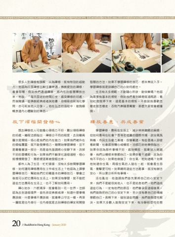 20 // Buddhist in Hong Kong . January 2020%u5f88%u591a%u4eba%u5c0d%u79aa%u4fee%u6709%u8aa4%u89e3%uff0c%u4ee5%u70ba%u79aa%u4fee%uff0c%u5c31%u6709%u7279%u5225%u7684%u8d85%u80fd%u529b%u3002%u4ed6%u8a8d%u70ba%u5370%u5ea6%u79aa%u4fee%u6bd4%u8f03%u6ce8%u91cd%u795e%u901a%uff1b%u4f5b%u6559%u63d0%u5230%u7684%u79aa%u4fee%uff0c%u7740%u91cd%u667a%u6167%uff0c%u4f8b%u5982%u6211%u5011%u901a%u904e%u79aa%u4fee%uff0c%u5c07%u5167%u5728%u7684%u667a%u6167%u91cb%u653e%u51fa%u4f86%u3002%u4ed6%u8aaa%uff1a%u300c%u6bcf%u5929%u56fa%u5b9a%u7684%u6642%u9593%u6253%u5750%uff0c%u611f%u53d7%u79aa%u4fee%u7684%u597d%u8655%uff0c%u7136%u5f8c%u95b1%u8b80%u4e00%u4e9b%u4f5b%u6559%u7d93%u5178%u6216%u8005%u5176%u4ed6%u66f8%uff0c%u5bb9%u6613%u5438%u6536%u548c%u6d88%u5316%u5b78%u554f%uff0c%u4ea6%u53ef%u548c%u5176%u4ed6%u4eba%u5206%u4eab%u3002%u300d%u4ed6%u5728%u5f18%u6cd5%u7684%u904e%u7a0b%u4e2d%uff0c%u80fd%u5920%u9806%u66a2%u8868%u9054%u5167%u5fc3%u9ad4%u9a57%u5230%u7684%u6771%u897f%u3002 %u653e%u4e0b%u7169%u60f1%u958b%u767c%u609f%u5fc3%u60f3%u53bb%u79aa%u4fee%u7684%u4eba%u53ef%u80fd%u64d4%u5fc3%u9818%u609f%u529b%u4e0d%u597d%uff0c%u96e3%u4ee5%u9818%u609f%u79aa%u4fee%u7684%u597d%u8655%u3002%u7e7c%u7a0b%u6cd5%u5e2b%u6307%u51fa%uff0c%u79aa%u4fee%u5206%u4e0d%u540c%u7684%u7a0b%u5ea6%uff0c%u53bb%u5230%u6700%u9ad8%u5c64%u6b21%u662f%u958b%u609f%u3002%u609f%u5fc3%u662f%u6211%u5011%u7684%u5167%u5728%u80fd%u529b%uff0c%u5982%u679c%u6211%u5011%u88ab%u5916%u5728%u7684%u7169%u60f1%u8986%u84cb%uff0c%u5c31%u4e0d%u80fd%u767c%u63ee%u609f%u529b%u3002%u525b%u958b%u59cb%u5b78%u7fd2%u79aa%u4fee%uff0c%u4e26%u4e0d%u662f%u6700%u7740%u91cd%u9019%u4e00%u90e8%u5206%uff0c%u800c%u662f%u9996%u5148%u5f37%u8abf%u5c07%u5fc3%u5b89%u975c%u4e0b%u4f86%uff0c%u6539%u6389%u4e0d%u597d%u7684%u7fd2%u6163%u548c%u884c%u70ba%u3002%u5982%u679c%u6211%u5011%u4e0d%u65b7%u6df1%u5316%u9019%u500b%u904e%u7a0b%uff0c%u609f%u5fc3%u5c31%u6162%u6162%u958b%u767c%u4e86%uff0c%u6167%u6839%u4fbf%u9010%u6f38%u88ab%u767c%u6398%u51fa%u4f86%u3002%u90fd%u5e02%u4eba%u70ba%u4e86%u751f%u6d3b%uff0c%u5fd9%u5fd9%u788c%u788c%uff0c%u6c92%u6709%u592a%u591a%u6642%u9593%u5b78%u7fd2%u79aa%u4fee%uff0c%u5982%u4f55%u904b%u7528%u79aa%u4fee%u61c9%u7528%u5728%u5de5%u4f5c%u6216%u751f%u6d3b%u4e0a%uff1f%u4ed6%u8a8d%u70ba%u4e0a%u8ab2%u5b78%u7fd2%u79aa%u4fee%u6280%u5de7%uff0c%u5e6b%u52a9%u6211%u5011%u6253%u597d%u6700%u57fa%u672c%u7684%u79aa%u4fee%u6280%u5de7%uff0c%u5b78%u6703%u4e4b%u5f8c%u5c31%u53ef%u4ee5%u628a%u5b83%u61c9%u7528%u5728%u751f%u6d3b%u4e0a%u3002%u5982%u679c%u6c92%u6709%u5b78%u7fd2%uff0c%u5c31%u4e0d%u80fd%u628a%u9019%u4e9b%u65b9%u6cd5%u61c9%u7528%u5728%u751f%u6d3b%u4e0a%uff0c%u4e5f%u4e0d%u4e86%u89e3%u5982%u4f55%u61c9%u7528%u3002%u79aa%u5fc3%u5982%u6c34%uff0c%u516d%u6839%u6e05%u6de8%uff0c%u5c31%u6703%u770b%u5230%u4e00%u82b1%u4e00%u4e16%u754c%u3002%u6cd5%u5e2b%u8a8d%u70ba%u53bb%u5230%u9019%u500b%u5883%u754c%uff0c%u9996%u5148%u4f9d%u5f9e%u4f5b%u6559%u6212%u5f8b%uff0c%u77e5%u9053%u4ec0%u9ebc%u4e8b%u60c5%u61c9%u8a72%u505a%uff0c%u4ec0%u9ebc%u4e8b%u60c5%u4e0d%u61c9%u8a72%u505a%uff0c%u5c31%u50cf%u5949%u516c%u5b88%u6cd5%u4e00%u6a23%u3002%u518d%u6df1%u4e00%u5c64%u5c31%u662f%u5f80%u5167%u4fee%u884c%uff0c%u5f80%u5167%u4fee%u5c31%u662f%u53bb%u5230%u79aa%u4fee%u7684%u79aa%u5b9a%u548c%u958b%u767c%u667a%u6167%u7684%u65b9%u6cd5%u3002%u5982%u679c%u4e0d%u5b78%u7fd2%u79aa%u4fee%u7684%u6280%u5de7%uff0c%u6839%u672c%u7121%u5f9e%u5165%u624b%u3002%u5b78%u7fd2%u79aa%u4fee%u5c31%u662f%u8a13%u7df4%u81ea%u5df1%u7684%u5fc3%u5982%u4f55%u8655%u4e16%u3002%u751f%u6d3b%u6709%u592a%u591a%u898f%u7bc4%uff0c%u4e0d%u80fd%u96a8%u5fc3%u6240%u6b32%uff0c%u80fd%u5feb%u6a02%u55ce%uff1f%u4ed6%u8a8d%u70ba%u9700%u8981%u6709%u57fa%u672c%u7684%u898f%u77e9%uff0c%u4f8b%u5982%u6211%u5011%u770b%u5230%u7da0%u71c8%u5c31%u904e%u99ac%u8def%uff1b%u770b%u5230%u7d05%u71c8%u5c31%u505c%u4e0b%u4f86%uff0c%u9019%u662f%u57fa%u672c%u7684%u898f%u77e9%u3002%u4e0d%u80fd%u8aaa%u6211%u559c%u6b61%u600e%u6a23%u8d70%u5c31%u600e%u6a23%u8d70%uff0c%u5426%u5247%u6c7d%u8eca%u96a8%u610f%u99d5%u99db%uff0c%u90a3%u9ebc%u5927%u5bb6%u5c31%u6703%u88ab%u649e%u5012%u3002%u91cb%u653e%u5584%u610f%uff0c%u5171%u6210%u5584%u696d%u5b78%u7fd2%u79aa%u4fee%uff0c%u61c9%u7528%u5728%u751f%u6d3b%u4e0a%uff0c%u6e1b%u5c11%u6797%u6797%u7e3d%u7e3d%u7684%u9ebb%u7169%uff0c%u4f46%u5982%u4f55%u61c9%u7528%u5728%u793e%u6703%uff1f%u9999%u6e2f%u662f%u55a7%u56c2%u7684%u570b%u969b%u5e02%u5834%uff0c%u653f%u6cbb%u6c23%u6c1b%u71b1%u71be%uff0c%u5e02%u6c11%u751f%u6d3b%u58d3%u529b%u6f38%u589e%uff0c%u6028%u8072%u8f09%u9053%u3002%u6709%u4e9b%u9999%u6e2f%u4eba%u5373%u4f7f%u770b%u65b0%u805e%uff0c%u4e5f%u6703%u611f%u5230%u50b7%u5fc3%u6216%u61a4%u6012%u3002%u6cd5%u5e2b%u5de7%u5999%u5730%u8209%u4f8b%u6307%u51fa%uff0c%u5982%u679c%u4f60%u56e0%u70ba%u90a3%u4ef6%u4e8b%u60c5%u4e0d%u597d%uff0c%u611f%u5230%u61a4%u6012%uff0c%u5c31%u50cf%u5225%u4eba%u505a%u932f%u4e8b%uff0c%u6211%u5011%u4ee5%u61a4%u6068%u4f86%u61f2%u7f70%u81ea%u5df1%u3002%u5982%u679c%u4f60%u770b%u4e0d%u904e%u773c%uff0c%u56e0%u70ba%u4f60%u6709%u4e0d%u5e73%u7684%u5fc3%u3002%u5982%u679c%u4ed6%u505a%u932f%u4e86%uff0c%u4f60%u751f%u6c23%uff0c%u4ed6%u77e5%u9053%u55ce%uff1f%u5982%u679c%u4ed6%u77e5%u9053%u4f60%u751f%u6c23%uff0c%u5169%u500b%u751f%u6c23%u7684%u4eba%u78b0%u5728%u4e00%u8d77%uff0c%u5c31%u6703%u7522%u751f%u6028%u6c23%uff0c%u885d%u64ca%u66f4%u53ef%u6015%u3002%u5982%u679c%u7e3d%u7528%u9019%u4e9b%u65b9%u6cd5%u8655%u4e8b%uff0c%u5c31%u6c92%u6709%u8fa6%u6cd5%u5b89%u5fc3%uff0c%u6240%u4ee5%u8981%u5206%u6790%u6240%u6709%u4e8b%u60c5%u3002%u6d3b%u5728%u4e82%u4e16%uff0c%u4ed6%u5f37%u8abf%u6211%u5011%u9996%u5148%u8981%u5c07%u81ea%u5df1%u7684%u5fc3%u5b89%u5b9a%u4e0b%u4f86%uff0c%u6211%u5011%u4e0d%u662f%u7e31%u5bb9%u5176%u4ed6%u4eba%uff0c%u4e5f%u4e0d%u662f%u59d1%u606f%u4ed6%u5011%u3002%u4ed6%u5011%u9020%u6210%u9019%u4e9b%u884c%u70ba%uff0c%u4e00%u5b9a%u6709%u4ed6%u5011%u7684%u539f%u56e0%uff0c%u4ed6%u5011%u6703%u627f%u53d7%u9019%u500b%u5f8c%u679c%u3002%u6211%u5011%u80fd%u5920%u628a%u81ea%u5df1%u7684%u5fc3%u5b89%u5b9a%u4e0b%u4f86%uff0c%u81f3%u5c11%u6c92%u6709%u62ff%u81ea%u5df1%u7684%u60c5%u7dd2%u61f