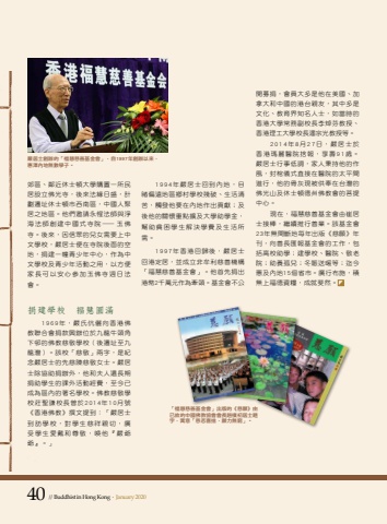 40 // Buddhist in Hong Kong . 40 // Buddhist in Hong Kong . January 2020 January 2020%u90ca%u5340%u3001%u9130%u8fd1%u4f11%u58eb%u9813%u5927%u5b78%u8cfc%u7f6e%u4e00%u6240%u6c11%u5c45%u8a2d%u7acb%u4f5b%u5149%u5bfa%uff0c%u5f8c%u4f86%u6cd5%u7de3%u65e5%u76db%uff0c%u8a08%u5283%u9077%u5740%u4f11%u58eb%u9813%u5e02%u897f%u5357%u5340%uff0c%u4e2d%u570b%u4eba%u805a%u5c45%u4e4b%u5730%u5340%u3002%u4ed6%u5011%u9080%u8acb%u6c38%u60fa%u6cd5%u5e2b%u8207%u6de8%u6d77%u6cd5%u5e2b%u5275%u5efa%u4e2d%u570b%u5f0f%u5bfa%u9662%u2014%u7389%u4f5b%u5bfa%u3002%u5f8c%u4f86%uff0c%u56e0%u4fe1%u773e%u7684%u5152%u5973%u9700%u8981%u4e0a%u4e2d%u6587%u5b78%u6821%uff0c%u56b4%u5c45%u58eb%u4fbf%u5728%u5bfa%u9662%u5f8c%u9762%u7684%u7a7a%u5730%uff0c%u6350%u5efa%u4e00%u5e62%u9752%u5c11%u5e74%u4e2d%u5fc3%uff0c%u4f5c%u70ba%u4e2d%u6587%u5b78%u6821%u53ca%u9752%u5c11%u5e74%u6d3b%u52d5%u4e4b%u7528%uff0c%u4ee5%u65b9%u4fbf%u5bb6%u9577%u53ef%u4ee5%u5b89%u5fc3%u53c3%u52a0%u7389%u4f5b%u5bfa%u9031%u65e5%u6cd5%u6703%u3002%u6350%u5efa%u5b78%u6821%u3000%u8914%u6167%u5713%u6eff1969%u5e74%uff0c%u56b4%u6c0f%u4f09%u5137%u5411%u9999%u6e2f%u4f5b%u6559%u806f%u5408%u6703%u6350%u6b3e%u8208%u8fa6%u4f4d%u65bc%u4e5d%u9f8d%u725b%u982d%u89d2%u4e0b%u90a8%u7684%u4f5b%u6559%u6148%u656c%u5b78%u6821%uff08%u5f8c%u9077%u5740%u81f3%u4e5d%u9f8d%u7063%uff09%u3002%u8a72%u6821%u300c%u6148%u656c%u300d%u5169%u5b57%uff0c%u662f%u7d00%u5ff5%u56b4%u5c45%u58eb%u7684%u5148%u6148%u9673%u6148%u656c%u5973%u58eb%u3002%u56b4%u5c45%u58eb%u9664%u5354%u52a9%u6350%u8fa6%u5916%uff0c%u4ed6%u548c%u592b%u4eba%u9084%u9577%u671f%u6350%u52a9%u5b78%u751f%u7684%u8ab2%u5916%u6d3b%u52d5%u7d93%u8cbb%uff0c%u81f3%u4eca%u5df2%u6210%u70ba%u5340%u5167%u7684%u8457%u540d%u5b78%u6821%u3002%u4f5b%u6559%u6148%u656c%u5b78%u6821%u838a%u8056%u8b19%u6821%u9577%u66fe%u65bc2014%u5e7410%u6708%u865f%u300a%u9999%u6e2f%u4f5b%u6559%u300b%u64b0%u6587%u63d0%u5230%uff1a%u300c%u56b4%u5c45%u58eb%u5230%u8a2a%u5b78%u6821%uff0c%u5c0d%u5b78%u751f%u6148%u7965%u89aa%u5207%uff0c%u5ee3%u53d7%u5b78%u751f%u611b%u6234%u548c%u5c0a%u656c%uff0c%u559a%u4ed6%u300e%u56b4%u723a%u723a%u300f%u3002%u300d1994%u5e74%u56b4%u5c45%u58eb%u56de%u5230%u5167%u5730%uff0c%u76ee%u7779%u504f%u9060%u5730%u5340%u9109%u6751%u5b78%u6821%u6b98%u7834%u3001%u751f%u6d3b%u6e05%u82e6%uff0c%u89f8%u767c%u4ed6%u8981%u5728%u5167%u5730%u4f5c%u51fa%u8ca2%u737b%uff1b%u53ca%u5f8c%u4ed6%u7684%u95dc%u61f7%u91cd%u9ede%u64f4%u53ca%u5927%u5b78%u52a9%u5b78%u91d1%uff0c%u5e6b%u52a9%u8ca7%u56f0%u5b78%u751f%u89e3%u6c7a%u5b78%u8cbb%u53ca%u751f%u6d3b%u6240%u9700%u30021997%u5e74%u9999%u6e2f%u56de%u6b78%u5f8c%uff0c%u56b4%u5c45%u58eb%u56de%u6e2f%u5b9a%u5c45%uff0c%u4e26%u6210%u7acb%u975e%u725f%u5229%u6148%u5584%u6a5f%u69cb%u300c%u798f%u6167%u6148%u5584%u57fa%u91d1%u6703%u300d%u3002%u4ed6%u9996%u5148%u6350%u51fa%u6e2f%u5e632%u5343%u842c%u5143%u4f5c%u70ba%u727d%u982d%u3002%u57fa%u91d1%u6703%u4e0d%u516c%u958b%u52df%u6350%uff0c%u6703%u54e1%u5927%u591a%u662f%u4ed6%u5728%u7f8e%u570b%u3001%u52a0%u62ff%u5927%u548c%u4e2d%u570b%u7684%u6e2f%u53f0%u89aa%u53cb%uff0c%u5176%u4e2d%u591a%u662f%u6587%u5316%u3001%u6559%u80b2%u754c%u77e5%u540d%u4eba%u58eb%uff0c%u5982%u7576%u6642%u7684%u9999%u6e2f%u5927%u5b78%u5e38%u52d9%u526f%u6821%u9577%u674e%u712f%u82ac%u6559%u6388%u3001%u9999%u6e2f%u7406%u5de5%u5927%u5b78%u6821%u9577%u6f58%u5b97%u5149%u6559%u6388%u7b49%u30022014%u5e748%u670827%u65e5%uff0c%u56b4%u5c45%u58eb%u65bc%u9999%u6e2f%u746a%u9e97%u91ab%u9662%u6368%u5831%uff0c%u4eab%u58fd91%u6b72%u3002%u56b4%u5c45%u58eb%u884c%u4e8b%u4f4e%u8abf%uff0c%u5bb6%u4eba%u79c9%u6301%u4ed6%u7684%u4f5c%u98a8%uff0c%u5c01%u68fa%u5100%u5f0f%u76f4%u63a5%u5728%u91ab%u9662%u7684%u592a%u5e73%u9593%u9032%u884c%uff0c%u4ed6%u7684%u9aa8%u7070%u73fe%u88ab%u4f9b%u5949%u5728%u53f0%u7063%u7684%u4f5b%u5149%u5c71%u53ca%u4f11%u58eb%u9813%u5fb7%u5dde%u4f5b%u6559%u6703%u7684%u83e9%u63d0%u4e2d%u5fc3%u3002%u73fe%u5728%uff0c%u798f%u6167%u6148%u5584%u57fa%u91d1%u6703%u7531%u5d14%u5c45%u58eb%u63a5%u68d2%uff0c%u7e7c%u7e8c%u63a8%u884c%u5584%u696d%u3002%u8a72%u57fa%u91d1%u670323%u5e74%u7121%u9593%u65b7%u5730%u6bcf%u5e74%u51fa%u7248%u300a%u6148%u9858%u300b%u5e74%u520a%uff0c%u5411%u5584%u9577%u532f%u5831%u57fa%u91d1%u6703%u7684%u5de5%u4f5c%uff0c%u5305%u62ec%u9ad8%u6821%u52a9%u5b78%uff1b%u5efa%u5b78%u6821%u3001%u91ab%u9662%u3001%u656c%u8001%u9662%uff1b%u52a9%u990a%u5b64%u5152%uff1b%u51ac%u8cd1%u9001%u6696%u7b49%uff1b%u8fc4%u4eca%u60e0%u53ca%u5167%u573015%u500b%u7701%u5e02%u3002%u5ee3%u884c%u5e03%u65bd%uff0c%u7a4d%u7121%u4e0a%u798f%u5fb7%u8cc7%u7ce7%uff0c%u6210%u5c31%u6590%u7136%u3002%u56b4%u5c45%u58eb%u5275%u8fa6%u7684%u300c%u798f%u6167%u6148%u5584%u57fa%u91d1%u6703%u300d%uff0c%u81ea1997%u5e74%u5275%u8fa6%u4ee5%u4f86%uff0c%u60e0%u6fa4%u5167%u5730%u7121%u6578%u5b78%u5b50%u3002%u300c%u798f%u6167%u6148%u5584%u57fa%u91d1%u6703%u300d%u51fa%u7248%u7684%u300a%u6148%u9858%u300b%u7531%u5df2%u6545%u7684%u4e2d%u570b%u4f5b%u6559%u5354%u6703%u6703%u9577%u8d99%u6a38%u521d%u5c45%u58eb%u984c%u5b57%uff0c%u5bd3%u610f%u300c%u6148%u60b2%u559c%u6368%uff0c%u9858%u529b%u7121%u7aae%u300d%u3002