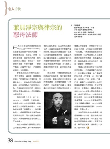 38 // Buddhist in Hong Kong . June 2021%u517c%u5177%u6de8%u5b97%u8207%u5f8b%u5b97%u7684%u6148%u821f%u6cd5%u5e2b%u6587%uff1a%u5c91%u9038%u98db%u54f2%u5b78%u7814%u7a76%u8005%u53ca%u591a%u5a92%u9ad4%u5de5%u4f5c%u8005%uff0c%u591a%u5e74%u4f86%u51fa%u5165%u5112%u91cb%u9053%u54f2%u5b78%u53ca%u4e2d%u897f%u6587%u5316%u7684%u6703%u901a%uff0c%u5c08%u7814%u6613%u5b78%uff0c%u8fd1%u5e74%u4ea6%u9189%u5fc3%u4f5b%u5b78%uff0c%u73fe%u70ba%u5927%u5b78%u517c%u4efb%u6559%u6388%u53ca%u5c08%u6b04%u4f5c%u8005%u5df2%u53bb%u4e16%u4e09%u5e74%u591a%u7684%u5927%u5fb7%u5922%u53c3%u8001%u548c%u5c1a%uff08%u516c%u51431915%u5e74%uff0d2017%u5e74%uff09%u751f%u524d%u66fe%u63d0%u53ca%u4ed6%u773c%u4e2d%u7684%u56db%u5927%u9ad8%u50e7%uff0c%u4e00%u662f%u865b%u96f2%u8001%u548c%u5c1a%uff0c%u4e8c%u662f%u5f18%u4e00%u5927%u5e2b%uff0c%u4e09%u662f%u5013%u865b%u6cd5%u5e2b%uff0c%u56db%u662f%u6148%u821f%u6cd5%u5e2b%u3002%u6148%u821f%u6cd5%u5e2b%u8f03%u5c11%u4eba%u63d0%u53ca%uff0c%u539f%u56e0%u4e4b%u4e00%uff0c%u4e5f%u8a31%u662f%u6148%u821f%u6cd5%u5e2b%u4e00%u751f%u5c08%u6ce8%u5be6%u8e10%uff0c%u4e0d%u611b%u6587%u5b57%u6232%u8ad6%uff0c%u800c%u5176%u9580%u4e0b%u5f1f%u5b50%uff0c%u4e5f%u5b78%u7fd2%u6148%u8001%u7cbe%u795e%uff0c%u5c11%u4f5c%u8b9a%u63da%u3002%u5922%u53c3%u8001%u548c%u5c1a%u5f62%u5bb9%u6148%u821f%u6cd5%u5e2b%uff1a%u300c%u6574%u5929%u62ab%u7740%u8863%uff0c%u8b1b%u5b8c%u8ab2%uff0c%u5c31%u570d%u7740%u4f5b%u5802%u8f49%uff1a%u300e%u963f%u5f4c%u9640%u4f5b%uff01%u963f%u5f4c%u9640%u4f5b%uff01%u963f%u5f4c%u9640%u4f5b%uff01%u300f%u300d%u82e5%u8ad6%u6148%u821f%u6cd5%u5e2b%u7684%u4f5b%u5b78%u9020%u8a63%uff0c%u5370%u5149%u5927%u5e2b%u70ba%u8fd1%u4ee3%u6de8%u5b97%u6cf0%u6597%uff1b%u5f18%u4e00%u5927%u5e2b%u70ba%u8fd1%u4ee3%u5f8b%u5b97%u5de8%u5320%uff1b%u6148%u821f%u6cd5%u5e2b%u5247%u517c%u5177%u6de8%u5b97%u8207%u5f8b%u5b97%uff0c%u4e14%u5c0d%u83ef%u56b4%u5b97%u4e5f%u751a%u6709%u7814%u7a76%u3002%u6148%u821f%u6cd5%u5e2b%uff08%u516c%u51431877%u5e74%uff0d1958%u5e74%uff09%uff0c%u4fd7%u59d3%u6881%uff0c%u6cd5%u540d%u666e%u6d77%uff0c%u5b57%u6148%u821f%u3002%u4ed6%u51fa%u751f%u65bc%u6e56%u5317%u96a8%u7e23%u4e00%u500b%u4f5b%u6559%u5bb6%u5ead%uff0c%u7236%u6bcd%u90fd%u662f%u4f5b%u6559%u5c45%u58eb%uff1b20%u6b72%u70ba%u5019%u88dc%u751f%u54e1%uff08%u4fd7%u7a31%u79c0%u624d%uff09%uff0c%u5f8c%u5f9e%u4e8b%u6559%u80b2%uff1b23%u6b72%u8207%u59bb%u540c%u8d74%u7576%u5730%u4f5b%u6d39%u5bfa%u4f9d%u5143%u7167%u548c%u5c1a%u51fa%u5bb6%uff0c%u540c%u5e74%u5728%u6b78%u5143%u5bfa%u53d7%u5177%u8db3%u6212%uff1b%u5176%u5f8c%u8d74%u63da%u5dde%u9577%u751f%u5bfa%u548c%u93ae%u6c5f%u6c5f%u5929%u5bfa%u53c3%u5b78%u3002%u4ed6%u572837%u6b72%u6642%u5165%u8b80%u6708%u971e%u6cd5%u5e2b%u5728%u4e0a%u6d77%u5275%u8fa6%u7684%u83ef%u56b4%u5927%u5b78%uff0c%u7562%u696d%u5f8c%u671d%u62dc%u666e%u9640%u5c71%u8207%u4e5d%u83ef%u5c71%uff0c%u4ee5%u53ca%u5728%u5404%u5730%u8b1b%u7d93%u5f18%u6cd5%uff1b43%u6b72%u6642%u5354%u52a9%u539f%u5148%u5728%u83ef%u56b4%u5927%u5b78%u7684%u540c%u5b78%u4e86%u5875%u6cd5%u5e2b%u8207%u6212%u5875%u6cd5%u5e2b%uff0c%u5728%u6f22%u53e3%u4e5d%u84ee%u5bfa%u8208%u8fa6%u83ef%u56b4%u5927%u5b78%uff0c%u4ee5%u7e7c%u627f%u5148%u5e2b%u6708%u971e%u6cd5%u5e2b%u907a%u5b78%uff1b46%u6b72%u6642%u53d7%u9080%u8d74%u676d%u5dde%u9748%u96b1%u5bfa%u8fa6%u660e%u6559%u5b78%u9662%uff0c%u6b21%u5e74%u8d74%u5e38%u719f%u8208%u798f%u5bfa%u8208%u8fa6%u6cd5%u754c%u5b78%u9662%uff1b51%u6b72%u6642%u53c8%u61c9%u93ae%u6c5f%u7af9%u6797%u5bfa%u4e4b%u9080%uff0c%u5275%u7acb%u7af9%u6797%u4f5b%u5b78%u9662%u3002%u6148%u821f%u6cd5%u5e2b%u4e00%u751f%u8f49%u6369%u9ede%u662f52%u6b72%u6642%u61c9%u5370%u5149%u5927%u5e2b%u4e4b%u8acb%uff0c%u63a5%u4efb%u8607%u5dde%u9748%u5dd6%u5c71%u5bfa%u4f4f%u6301%u3002%u9748%u5dd6%u5c71%u662f%u8fd1%u4ee3%u4e2d%u570b%u6de8%u5b97%u7684%u5c08%u4fee%u9053%u5834%uff0c%u5176%u898f%u6a21%u7684%u5177%u5099%u3001%u884c%u6301%u7684%u56b4%u683c%uff0c%u53ef%u4ee5%u5ab2%u7f8e%u53e4%u4ee3%u5eec%u5c71%u3002%u7576%u5e74%u5eec%u5c71%u5bfa%u4f4f%u6301%u9060%u516c%u5927%u5e2b%u70ba%u6de8%u5b97%u521d%u7956%uff1b%u9748%u5dd6%u5c71%u5bfa%u91cd%u5efa%u5f8c%uff0c%u4f4f%u6301%u662f%u6de8%u5b97%u5341%u4e09%u7956%u5370%u5149%u5927%u5e2b%u3002%u7531%u65bc%u5370%u5149%u5927%u5e2b%u8981%u9589%u300c%u751f%u6b7b%u95dc%u300d%uff0c%u7121%u6cd5%u89aa%u8a02%u9053%u5834%u65b9%u91dd%u548c%u7387%u9818%u5927%u773e%uff0c%u56e0%u800c%u7279%u6d3e%u5c08%u4eba%u8d74%u4e0a%u6d77%u606d%u8acb%u6148%u8001%u524d%u4f86%u4e3b%u6301%u9053%u5834%u3002%u6148%u8001%u805e%u6089%u6b64%u8a0a%uff0c%u8207%u5176%u5f18%u63da%u6de8%u571f%u7684%u5fd7%u5411%u76f8%u5408%uff0c%u9042%u5373%u4e0d%u8fad%u8271%u8f9b%uff0c%u6b23%u7136%u524d%u5f80%u3002%u9748%u5dd6%u5c71%u662f%u6625%u79cb%u6642%u5433%u738b%u592b%u5dee%u9928%u5a03%u5bae%u7684%u820a%u5740%uff0c%u4e5f%u662f%u8d8a%u570b%u737b%u897f%u65bd%u7684%u5730%u65b9%uff0c%u4f4d%u65bc%u8607%u5dde%u6728%u7006%u93ae%uff0c%u6709%u300c%u9748%u5dd6%u79c0%u7d55%u51a0%u6c5f%u5357%u300d%u7684%u7f8e%u8b7d%u3002%u5c71%u4e0a%u602a%u77f3%u5d99%u5ccb%uff0c%u6709%u77f3%u86c7%u3001%u77f3%u9f13%u3001%u77f3%u9aeb%u3001%u77f3%u9f9c%u3001%u77f3%u5154%u3001%u9d1b%u9d26%u77f3%u3001%u725b%u80cc%u77f3%u7b49%u3002%u6148%u821f%u6cd5%u5e2b%u6210%u70ba%u9748%u5dd6%u5c71%u5bfa%u4f4f%u6301%u5f8c%uff0c%u5c07%u6b64%u5bfa%u767c%u63da%u5149%u5927%uff0c%u4ee4%u9748%u5dd6%u5c71%u4e00%u8e8d%u70ba%u5168%u570b%u6de8%u571f%u5b97%u7684%u5927%u672c%u5c71%u3002%u4e2d%u83ef%u4eba%u6c11%u5171%u548c%u570b%u6210%u7acb%u5f8c%uff0c%u6148%u821f%u6cd5%u5e2b%u65bc1952%u5e74%u63a5%u4efb%u5357%u666e%u9640%u5bfa%u4f4f%u6301%uff1b1953%u5e74%u7576%u9078%u4e2d%u570b%u4f5b%u6559%u5354%u6703%u7406%u4e8b%uff1b1956%u5e74%u4efb%u671f%u6eff%u5f8c%u56de%u5230%u5317%u4eac%u5b89%u990a%u7cbe%u820d%u975c%u4fee%uff1b1957%u5e74%u7576%u9078%u4e2d%u570b%u4f5b%u6559%u5354%u6703%u5e38%u52d9%u7406%u4e8b%uff1b1958%u5e74%u5713%u5bc2%uff0c%u4eab%u58fd81%u6b72%u3002%u5176%u5f1f%u5b50%u61b6%u8ff0%u6148%u8001%u751f%u524d%u98a8%u7bc4%uff0c%u4ed6%u7d93%u5e38%u7a7f%u7740%u4e00%u886b%u4e00%u8902%uff0c%u5c0d%u65bc%u7269%u8cea%u5c11%u6b32%u77e5%u8db3%uff0c%u4e14%u548c%u5584%u53ef%u89aa%uff0c%u4ee4%u4eba%u61f