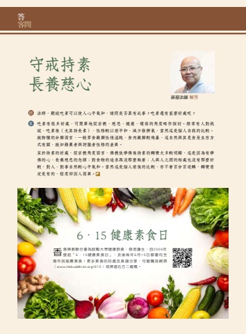 48 // Buddhist in Hong Kong . June 2021%u7b54%u5ba2%u554f%u554f %u6cd5%u5e2b%uff0c%u807d%u8aaa%u5403%u7d20%u53ef%u4ee5%u4f7f%u4eba%u5fc3%u5e73%u6c23%u548c%uff0c%u8acb%u554f%u662f%u5426%u771f%u6709%u6b64%u4e8b%uff1f%u5403%u7d20%u9084%u6709%u751a%u9ebc%u597d%u8655%u5462%uff1f%u7b54 %u5403%u7d20%u6709%u5f88%u591a%u597d%u8655%uff0c%u53ef%u7c21%u55ae%u5730%u5f9e%u5b97%u6559%u3001%u6148%u60b2%u3001%u5065%u5eb7%u3001%u74b0%u4fdd%u7684%u89d2%u5ea6%u7565%u4f5c%u63a2%u8a0e%u3002%u7d93%u5e38%u6709%u4eba%u5c0d%u6211%u8aaa%uff0c%u5403%u7d20%u5f8c%uff08%u5c24%u5176%u6301%u9577%u7d20%uff09%uff0c%u6027%u683c%u8f03%u4ee5%u524d%u5e73%u548c%uff0c%u6e1b%u5c11%u767c%u813e%u6c23%uff0c%u7576%u7136%u9019%u662f%u500b%u4eba%u81ea%u6211%u7684%u6bd4%u8f03%u3002%u5c31%u7269%u7a2e%u7684%u5206%u985e%u800c%u8a00%uff0c%u4e00%u822c%u8349%u98df%u7378%u985e%u6027%u60c5%u6eab%u7d14%uff0c%u98df%u8089%u7378%u985e%u8f03%u6b98%u66b4%uff0c%u9019%u81ea%u7136%u8207%u5176%u8993%u98df%u53ca%u751f%u5b58%u65b9%u5f0f%u6709%u95dc%uff0c%u5c31%u5982%u52d9%u8fb2%u8005%u8207%u72e9%u7375%u8005%u6027%u683c%u7684%u5dee%u7570%u3002%u81f3%u65bc%u6301%u7d20%u7684%u597d%u8655%uff0c%u5f9e%u5b97%u6559%u89d2%u5ea6%u800c%u8a00%uff0c%u4f5b%u6559%u5f92%u5b78%u4f5b%u5f8c%u6301%u7d20%u7684%u8f49%u8b8a%u5927%u591a%u8f03%u660e%u986f%uff0c%u9019%u662f%u56e0%u70ba%u6709%u5b78%u4f5b%u7684%u5fc3%u3001%u9577%u990a%u6148%u60b2%u7684%u5ff5%u982d%uff1b%u5c0d%u98df%u7269%u7684%u8ffd%u6c42%u518d%u6c92%u90a3%u9ebc%u57f7%u7740%uff1b%u4eba%u8207%u4eba%u4e4b%u9593%u7684%u76f8%u8655%u4e5f%u6c92%u6709%u90a3%u9ebc%u8a08%u8f03%uff0c%u5c0d%u4eba%u3001%u5c0d%u4e8b%u81ea%u7136%u8f03%u5fc3%u5e73%u6c23%u548c%u3002%u7576%u7136%u9019%u662f%u500b%u4eba%u524d%u5f8c%u7684%u6bd4%u8f03%uff0c%u4ea6%u4e0d%u6703%u767e%u5206%u767e%u9006%u8f49%uff0c%u8f49%u8b8a%u80af%u5b9a%u662f%u6709%u7684%uff0c%u7a0b%u5ea6%u537b%u56e0%u4eba%u800c%u7570%u3002%u5b88%u6212%u6301%u7d20 %u9577%u990a%u6148%u5fc3%u6f14%u6148%u6cd5%u5e2b %u89e3%u7b546%uff0e15 %u5065%u5eb7%u7d20%u98df%u65e5%u9999%u6e2f%u4f5b%u6559%u806f%u5408%u6703%u70ba%u9f13%u52f5%u5927%u773e%u5065%u5eb7%u98f2%u98df%uff0c%u6148%u60b2%u8b77%u751f%uff0c%u81ea2006%u5e74%u767c%u8d77%u300c6%uff0e15%u5065%u5eb7%u7d20%u98df%u65e5%u300d%uff0c%u53ca%u5f8c%u6bcf%u5e746%u670815%u65e5%u90fd%u6703%u5411%u5168%u6e2f%u5e02%u6c11%u63a8%u5ee3%u7d20%u98df%u3002%u66f4%u591a%u7d20%u98df%u7684%u597d%u8655%u53ca%u98df%u8b5c%u5206%u4eab%uff0c%u53ef%u700f%u89bd%u5176%u7db2%u9801%uff08www.hkbuddhist.org/615%uff09%u6216%u6383%u63cf%u53f3%u65b9%u4e8c%u7dad%u78bc%u3002