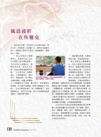 08 // Buddhist in Hong Kong . June 2021%u5f88%u591a%u8001%u592b%u8001%u59bb%uff0c%u5171%u540c%u8d70%u5230%u4eba%u751f%u7684%u665a%u5e74%u968e%u6bb5%uff0c%u57f7%u5b50%u4e4b%u624b%uff0c%u975e%u5e38%u6069%u611b%u3002%u4f46%u56de%u9867%u4e00%u751f%uff0c%u4ed6%u5011%u5f80%u5f80%u90fd%u6703%u544a%u8a34%u4eba%uff0c%u5a5a%u59fb%u8def%u4e0a%u66fe%u6709%u4e0d%u5c11%u98a8%u6ce2%uff0c%u80fd%u8de8%u8d8a%u904e%u4f86%uff0c%u95dc%u9375%u5728%u65bc%u300c%u73cd%u60dc%u300d%u3002%u300c%u6148%u5c71%u5bfa%u4f5b%u6cd5%u5fc3%u9748%u8f14%u5c0e%u4e2d%u5fc3%u300d%u70ba%u6211%u5011%u4ecb%u7d39%u4e86%u738b%u5148%u751f%u592b%u5a66%u548c%u5c0f%u82b9%u592b%u5a66%u7684%u500b%u6848%u3002%u738b%u5148%u751f%u548c%u592a%u592a%u7d50%u5a5a4%u5e74%uff0c%u5a5a%u59fb%u672c%u4f86%u5c1a%u597d%uff0c%u4f46%u5152%u5b50%u51fa%u751f%u5f8c%uff0c%u537b%u70ba%u4ed6%u5011%u7684%u5a5a%u59fb%u5e36%u4f86%u6311%u6230%u3002%u300c%u592a%u592a%u7522%u5b50%u5f8c%uff0c%u8eab%u9ad4%u672a%u5fa9%u5143%uff0c%u53c8%u8981%u7167%u9867%u5b69%u5b50%uff0c%u58d3%u529b%u5f88%u5927%uff0c%u60c5%u7dd2%u53d7%u56f0%u3002%u70ba%u4e86%u8b93%u592a%u592a%u76e1%u5feb%u5eb7%u5fa9%uff0c%u6211%u76e1%u529b%u7167%u9867%u5b69%u5b50%u3002%u4f46%u7167%u9867%u5152%u5b50%u4e0d%u5bb9%u6613%uff0c%u58d3%u529b%u5f88%u5927%uff0c%u6709%u4e9b%u4e8b%u60c5%u672a%u5982%u7406%u60f3%u3002%u592a%u592a%u7e3d%u4e0d%u80fd%u91cb%u61f7%uff0c%u7d50%u679c%u592b%u59bb%u95dc%u4fc2%u5927%u4e0d%u5982%u524d%u3002%u300d%u738b%u5148%u751f%u7121%u5948%u5730%u9053%u51fa%u3002%u4ed6%u4e00%u5411%u9077%u5c31%u59bb%u5b50%uff0c%u70ba%u5bb6%u5ead%u9ed8%u9ed8%u4ed8%u51fa%uff0c%u4f46%u5152%u5b50%u51fa%u751f%u5f8c%uff0c%u8207%u592a%u592a%u7684%u76f8%u8655%u70ba%u4ed6%u5e36%u4f86%u58d3%u529b%uff0c%u4ed6%u6108%u4f86%u6108%u4e0d%u958b%u5fc3%u3002%u5a5a%u59fb%u9047%u5230%u56f0%u64fe%uff0c%u592b%u59bb%u5006%u60f3%u5230%u6c42%u52a9%uff0c%u6c42%u52a9%u4fbf%u662f%u73cd%u60dc%u3002%u300c%u6148%u5c71%u5bfa%u4f5b%u6cd5%u5fc3%u9748%u8f14%u5c0e%u4e2d%u5fc3%u300d%u7684%u793e%u5de5%u68b3%u7406%u738b%u5148%u751f%u7684%u8655%u4e8b%u65b9%u5f0f%uff0c%u555f%u767c%u4ed6%u91cd%u65b0%u601d%u8003%u8655%u7406%u65b9%u6cd5%u662f%u5426%u6b63%u78ba%u3002%u738b%u5148%u751f%u56e0%u800c%u5b78%u6703%u4f5b%u6cd5%u63d0%u5021%u7684%u300c%u9006%u589e%u4e0a%u7de3%u300d%u53ca%u300c%u5982%u7406%u4f5c%u610f%u300d%u3002%u5373%u662f%u660e%u767d%u4e86%u9006%u5883%u53ef%u4ee5%u8003%u9a57%u9053%u5fc3%u548c%u6fc0%u767c%u6f5b%u80fd%uff0c%u6b63%u78ba%u7684%u614b%u5ea6%u548c%u5fc3%u5883%u5f88%u91cd%u8981%u3002%u4ed6%u958b%u59cb%u660e%u767d%u592a%u592a%u7684%u60c5%u7dd2%u56f0%u64fe%uff0c%u4ed6%u4e5f%u5b78%u6703%u89c0%u5bdf%u81ea%u5df1%u7576%u4e0b%u7684%u60c5%u7dd2%uff0c%u5b78%u6703%u63a5%u53d7%u7576%u4e0b%u7684%u611f%u89ba%u3002%u807d%u5230%u4e00%u4e9b%u96e3%u807d%u7684%u8a71%uff0c%u6216%u8005%u770b%u898b%u4e00%u4e9b%u4e0d%u60f3%u767c%u751f%u7684%u4e8b%u60c5%uff0c%u4ed6%u63d0%u9192%u81ea%u5df1%u5167%u5fc3%u4e0d%u61c9%u8d77%u8caa%u3001%u778b%u3001%u7661%uff0c%u800c%u662f%u4fdd%u6301%u5167%u5fc3%u6e05%u975c%uff0c%u9806%u7740%u4e8b%u60c5%u7684%u6f14%u8b8a%u4f5c%u51fa%u61c9%u5c0d%u3002%u7d93%u904e%u8f14%u5c0e%uff0c%u4ed6%u66f4%u52a0%u4e86%u89e3%u81ea%u5df1%u548c%u59bb%u5b50%u7684%u5fc3%u610f%u53ca%u6b32%u6c42%uff0c%u4ee5%u53ca%u96d9%u65b9%u9762%u5c0d%u7684%u9650%u5236%u8207%u5177%u5099%u7684%u6f5b%u529b%u3002%u6b64%u5916%uff0c%u4ed6%u5f97%u5230%u66f4%u591a%u7684%u65b9%u6cd5%u53bb%u61c9%u5c0d%u53ca%u6539%u8b8a%u59bb%u5b50%u7684%u60c5%u7dd2%uff0c%u4ee5%u53ca%u8655%u7406%u5a5a%u59fb%u554f%u984c%u3002%u738b%u5148%u751f%u548c%u592a%u592a%u660e%u767d%u5230%u7f8e%u6eff%u7684%u5a5a%u59fb%u5fc5%u9808%u4e92%u76f8%u5c0a%u91cd%uff0c%u5404%u81ea%u4fdd%u7559%u5c6c%u65bc%u81ea%u5df1%u7684%u7a7a%u9593%u3002%u9664%u4e86%u5b78%u6703%u300c%u5584%u5f85%u300d%u5c0d%u65b9%uff0c%u9084%u5b78%u6703%u300c%u5584%u5f85%u300d%u81ea%u5df1%uff0c%u7406%u89e3%u5f7c%u6b64%u7684%u611f%u53d7%u3002%u738b%u5148%u751f%u8868%u793a%uff0c%u4ed6%u5b78%u6703%u5c0a%u91cd%u592a%u592a%u7684%u60c5%u7dd2%uff0c%u540c%u6642%u4ea6%u4e0d%u6703%u5ffd%u7565%u81ea%u5df1%u7684%u611f%u53d7%u3002%u4ed6%u611f%u8b1d%u592a%u592a%u7684%u611b%u3001%u5305%u5bb9%uff0c%u4ee5%u53ca%u4e00%u76f4%u4ee5%u4f86%u7684%u4ed8%u51fa%u548c%u52aa%u529b%u3002%u98a8%u6d6a%u6ce2%u6298%u5728%u6240%u96e3%u514d%u738b%u5148%u751f%u548c%u592a%u592a%u7d50%u5a5a4%u5e74%uff0c%u5169%u4eba%u7684%u76f8%u8655%u66fe%u9047%u56f0%u64fe%uff0c%u7d93%u904e%u793e%u5de5%u8f14%u5c0e%u5f8c%uff0c%u5df2%u89e3%u6c7a%u4e86%u554f%u984c%u3002