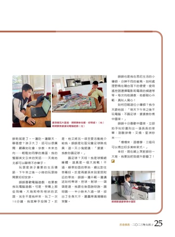 %u662f%uff0c%u4ed6%u53c8%u5c07%u53e6%u4e00%u9805%u81f3%u611b%u6d3b%u52d5%u63a8%u4ecb%u7d66%u6211%u3002%u6717%u6717%u662f%u793e%u5340%u5152%u7ae5%u8db3%u7403%u968a%u6210%u54e1%uff0c%u9019%u4e00%u5929%u5c0f%u9b3c%u63d0%u8b70%uff1a%u300c%u5a46%u5a46%uff0c%u6211%u6559%u4f60%u8e22%u8db3%u7403%u3002%u300d%u3000%u3000%u8e22%u8db3%u7403%uff1f%u5929%u5440%uff01%u6211%u662f%u7403%u985e%u7d55%u7de3%u9ad4%uff0c%u9019%u771f%u662f%u4e00%u500b%u5927%u6311%u6230%uff01%u4e0d%u904e%uff0c%u7da0%u8349%u5982%u8335%u7684%u8349%u5730%uff0c%u7e3d%u6bd4%u5c0d%u4f4f%u7192%u5e55%u597d%u3002%u65bc%u662f%u5169%u5a46%u5b6b%u4f86%u5230%u5bb6%u5c45%u9644%u8fd1%u7684%u8349%u5730%uff0c%u6717%u6717%u4e00%u908a%u793a%u7bc4%u4e00%u908a%u8b1b%u8ff0%u5982%u4f55%u5e36%u7403%u3001%u63a7%u7403%u3001%u5c04%u7403%u2026%u2026%u982d%u982d%u662f%u9053%uff0c%u6211%u8ddf%u5728%u5f8c%u9762%u8dd1%u5440%u8dd1%u3001%u8e22%u5440%u8e22%u2026%u2026%u534a%u5c0f%u6642%u672a%u5165%u904e%u4e00%u7403%uff0c%u537b%u51fa%u4e86%u5168%u8eab%u5927%u6c57%uff0c%u9084%u8d0f%u5f97%u6eff%u5834%u563b%u54c8%u7b11%u8072%u3002 %u3000%u3000%u6717%u6717%u4e5f%u662f%u6211%u5728%u6089%u5c3c%u751f%u6d3b%u7684%u5c0f%u5c0e%u5e2b%uff0c%u5206%u8fa8%u4e0d%u540c%u7684%u96c0%u9ce5%u3001%u5982%u4f55%u8655%u7406%u91ce%u9ce5%u5728%u967d%u53f0%u843d%u4e0b%u7684%u4fbf%u4fbf%u3001%u4f7f%u7528%u9059%u63a7%u5668%u9078%u64c7%u96fb%u5f71%u548c%u96fb%u8996%u7684%u983b%u9053%u7b49%u7b49%u3002%u6bcf%u6b21%u5411%u4ed6%u8acb%u6559%uff0c%u4ed6%u90fd%u8010%u5fc3%u793a%u7bc4%uff0c%u771f%u53eb%u4eba%u7aa9%u5fc3%uff01%u3000%u3000%u5982%u4f55%u56de%u5831%u9019%u4f4d%u5c0f%u5c0e%u5e2b%uff1f%u6211%u4eca%u5929%u8ddf%u4ed6%u8aaa%uff1a%u300c%u660e%u5929%u4e0b%u5348%u8336%u4e4b%u5f8c%u4e0d%u73a9%u96fb%u8166%u3001%u4e0d%u8e22%u8db3%u7403%uff0c%u5a46%u5a46%u6559%u4f60%u716e%u4e2d%u570b%u83dc%u3002%u300d%u3000%u3000%u6717%u6717%u5341%u5206%u559c%u6b61%u4e2d%u570b%u83dc%uff0c%u7acb%u5373%u62cd%u624b%u53eb%u597d%u9084%u5217%u51fa%u4e00%u5f35%u9577%u9577%u7684%u83dc%u55ae%uff1a%u751c%u9178%u6392%u9aa8%u3001%u53c9%u71d2%u3001%u661f%u6d32%u7092%u7c73%u2026%u2026%u3000%u3000%u300c%u6162%u6162%u4f86%uff0c%u9010%u6a23%u5b78%uff0c%u4e09%u500b%u6708%u53ef%u4ee5%u716e%u51fa%u597d%u591a%u7f8e%u5473%u83dc%u5f0f%u3002%u300d%u3000%u3000%u5e78%u597d%uff0c%u73fe%u5728%u7db2%u4e0a%u70f9%u98ea%u7bc0%u76ee%u4e00%u5927%u5806%uff0c%u6211%u8981%u52a0%u628a%u52c1%u63d0%u5347%u5eda%u85dd%u4e86%uff01 %u9905%u4e7e%u5c31%u662f%u4e86%u3002%u4e00%u908a%u5403%u4e00%u908a%u804a%u5929%uff0c%u804a%u751a%u9ebc%uff1f%u5b69%u5b50%u5927%u4e86%uff0c%u8a71%u53ef%u4ee5%u5f88%u5ee3%u95ca%uff0c%u56b4%u8085%u5982%u793e%u6703%u3001%u5b97%u6559%u3001%u672a%u4f86%u5fd7%u5411%u2026%u2026%u8f15%u9b06%u5982%u540c%u5b78%u7684%u6417%u86cb%u3001%u6211%u7684%u8e69%u8173%u82f1%u6587%u5f15%u4f86%u7684%u7b11%u8a71%u2026%u2026%u5929%u5357%u5730%u5317%u90fd%u53ef%u4ee5%u804a%u5f97%u4e0d%u4ea6%u6a02%u4e4e%u3002%u3000 %u3000 %u73a9%u800d%u662f%u5b69%u5b50%u91cd%u8981%u7684%u751f%u6d3b%u74b0%u7bc0%uff0c%u4e0b%u5348%u8336%u4e4b%u5f8c%u4e00%u5c0f%u6642%u7684%u73a9%u800d%u6642%u9593%u8981%u597d%u597d%u5b89%u6392%u3002%u3000%u3000%u6717%u6717%u559c%u6b61%u96fb%u8166%u904a%u6232%uff0c%u4ed6%u8981%u6559%u6211%u73a9%u96fb%u8166%u904a%u6232%u3002%u53ef%u662f%uff0c%u7192%u5e55%u4e0a%u90a3%u4e9b%u98db%u6a5f%u3001%u5927%u70ae%u548c%u5947%u5f62%u602a%u72c0%u7684%u6b66%u5668%uff0c%u5b8c%u5168%u4e0d%u662f%u6211%u676f%u8336%uff0c%u73a9%u4e86%u4e00%u6b2110%u5206%u9418%uff0c%u6211%u5c31%u8209%u624b%u6295%u964d%u4e86%u3002%u65bc%u5a46%u5b6b%u5006%u73a9%u5927%u5bcc%u7fc1%uff0c%u6717%u6717%u52dd%u5238%u5728%u63e1%uff0c%u597d%u5f97%u621a%uff01%uff08%u53f3%uff09%u6717%u6717%u8981%u6559%u5a46%u5a46%u73a9%u96fb%u8166%u904a%u6232%uff08%u5de6%uff09%u6717%u6717%u8ddf%u5a46%u5a46%u5b78%u716e%u4e2d%u570b%u83dc%u9999%u6e2f%u4f5b%u6559 . %u4e8c%u25cb%u4e8c%u4e09%u5e74%u516d%u6708 // 25
