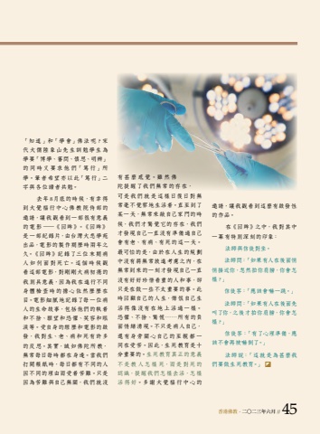 %u9999%u6e2f%u4f5b%u6559 . %u4e8c%u25cb%u4e8c%u4e09%u5e74%u516d%u6708 // 45 %u6709%u751a%u9ebc%u611f%u89ba%u3002%u96d6%u7136%u4f5b%u9640%u63d0%u9192%u4e86%u6211%u5011%u7121%u5e38%u7684%u5b58%u5728%uff0c%u53ef%u662f%u6211%u5011%u5c31%u662f%u9019%u6a23%u65e5%u5fa9%u65e5%u5c0d%u7121%u5e38%u6beb%u4e0d%u89ba%u5bdf%u5730%u751f%u6d3b%u7740%u3002%u76f4%u81f3%u5230%u4e86%u67d0%u4e00%u5929%uff0c%u7121%u5e38%u4f86%u6572%u81ea%u5df1%u5bb6%u9580%u7684%u6642%u5019%uff0c%u6211%u5011%u624d%u9a5a%u89ba%u5b83%u7684%u5b58%u5728%uff0c%u6211%u5011%u624d%u767c%u73fe%u81ea%u5df1%u4e00%u76f4%u6c92%u6709%u6e96%u5099%u904e%u81ea%u5df1%u6703%u6709%u8001%u3001%u6709%u75c5%u3001%u6709%u6b7b%u7684%u9019%u4e00%u5929%u3002%u6700%u53ef%u6015%u7684%u662f%uff0c%u7531%u65bc%u5728%u4eba%u751f%u7684%u898f%u5283%u4e2d%u6c92%u6709%u5c07%u7121%u5e38%u653e%u9032%u8003%u616e%u4e4b%u5167%uff0c%u5728%u7121%u5e38%u5230%u4f86%u7684%u4e00%u523b%u624d%u767c%u73fe%u81ea%u5df1%u4e00%u76f4%u6c92%u6709%u597d%u597d%u73cd%u60dc%u770b%u91cd%u7684%u4eba%u548c%u4e8b%uff0c%u537b%u53ea%u662f%u5728%u505a%u4e00%u4e9b%u4e0d%u592a%u91cd%u8981%u7684%u4e8b%u3002%u6b64%u6642%u56de%u9867%u81ea%u5df1%u7684%u4eba%u751f%uff0c%u6094%u6068%u81ea%u5df1%u751f%u6d3b%u5f97%u50cf%u6c92%u6709%u5728%u5730%u4e0a%u6d3b%u904e%u4e00%u6a23%u3002%u6050%u61fc%u3001%u4e0d%u6368%u3001%u9a5a%u614c%u2026%u2026%u6240%u6709%u7684%u8ca0%u9762%u60c5%u7dd2%u6e67%u73fe%u3002%u4e0d%u53ea%u662f%u75c5%u4eba%u81ea%u5df1%uff0c%u9084%u6709%u8eab%u65c1%u95dc%u5fc3%u81ea%u5df1%u7684%u81f3%u89aa%u90fd%u4e00%u540c%u5728%u53d7%u82e6%u3002%u56e0%u6b64%uff0c%u751f%u6b7b%u6559%u80b2%u662f%u5341%u5206%u91cd%u8981%u7684%u3002%u751f%u6b7b%u6559%u80b2%u771f%u6b63%u7684%u610f%u7fa9%u4e0d%u662f%u6559 %u4eba%u600e %u6a23 %u6b7b%uff0c%u800c%u662f %u5c0d%u6b7b%u7684%u8a8d%u8b58%uff0c%u63d0%u9192%u6211%u5011%u600e%u6a23%u53bb%u6d3b%uff0c%u600e%u6a23%u6d3b%u5f97%u597d%u3002%u591a%u8b1d%u5927%u89ba%u798f%u884c%u4e2d%u5fc3%u7684%u9080%u8acb%uff0c%u8b93%u6211%u89c0%u770b%u5230%u9019%u9ebc%u6709%u555f%u767c%u6027%u7684%u4f5c%u54c1%u3002%u3000%u3000%u5728%u300a%u56de%u7738%u300b%u4e4b%u4e2d%uff0c%u6211%u5c0d%u5176%u4e2d%u4e00%u5e55%u6709%u7279%u5225%u6df1%u523b%u7684%u5370%u8c61%uff1a%u3000%u3000%u6cd5%u5e2b%u8207%u4fe1%u5f92%u5c0d%u5750%u3002%u3000%u3000%u6cd5%u5e2b%u554f%uff1a%u300c%u5982%u679c%u6709%u4eba%u5728%u5f8c%u9762%u6084%u6084%u63a5%u8fd1%u4f60%uff0c%u5ffd%u7136%u62cd%u4f60%u80a9%u8180%uff0c%u4f60%u6703%u600e%u6a23%uff1f%u300d%u3000%u3000%u4fe1%u5f92%u7b54%uff1a%u300c%u61c9%u8a72%u6703%u5687%u4e00%u8df3%u3002%u300d%u3000%u3000%u6cd5%u5e2b%u554f%uff1a%u300c%u5982%u679c%u6709%u4eba%u5728%u5f8c%u9762%u5148%u53eb%u4e86%u4f60%uff0c%u4e4b%u5f8c%u624d%u62cd%u4f60%u80a9%u8180%uff0c%u4f60%u6703%u600e%u6a23%uff1f%u300d%u3000%u3000%u4fe1%u5f92%u7b54%uff1a%u300c%u6709%u4e86%u5fc3%u7406%u6e96%u5099%uff0c%u61c9%u8a72%u4e0d%u6703%u518d%u88ab%u5687%u5012%u4e86%u3002%u300d%u3000%u3000%u6cd5%u5e2b%u8aaa%uff1a%u300c%u9019%u5c31%u662f%u70ba%u751a%u9ebc%u6211%u5011%u8981%u505a%u751f%u6b7b%u6559%u80b2%u3002%u300d%u300c%u77e5%u9053%u300d%u548c%u300c%u5b78%u6703%u300d%u4f5b%u6cd5%u5462%uff1f%u5b8b%u4ee3%u5927%u5112%u9678%u8c61%u5c71%u5148%u751f%u8a13%u52c9%u5b78%u751f%u70ba%u5b78%u8981%u300c%u535a%u5b78%u3001%u5be9%u554f%u3001%u614e%u601d%u3001%u660e%u8fa8%u300d%u7684%u540c%u6642%u53c8%u8981%u6c42%u4ed6 %u5011%u300c%u7be4 %u884c%u300d%u6240%u5b78%u3002%u7b46%u8005%u5e0c%u671b%u4ea6%u4ee5%u6b64%u300c%u7be4%u884c%u300d%u4e8c%u5b57%u8207%u5404%u4f4d%u8b80%u8005%u5171%u52c9%u3002%u3000%u3000%u53bb%u5e748%u6708%u5e95%u7684%u6642%u5019%uff0c%u6709%u5e78%u5f97%u5230%u5927%u89ba%u798f%u884c%u4e2d%u5fc3%u4f5b%u6559%u9662%u4f8d%u90e8%u7684%u9080%u8acb%uff0c%u8b93%u6211%u89c0%u770b%u5230%u4e00%u90e8%u5f88%u6709%u610f%u7fa9%u7684%u96fb%u5f71%u2014%u300a%u56de%u7738%u300b%u3002%u300a%u56de%u7738%u300b%u662f%u4e00%u90e8%u7d00%u9304%u7247%uff0c%u7531%u53f0%u7063%u5927%u60b2%u5b78%u82d1%u51fa%u54c1%uff0c%u96fb%u5f71%u7684%u88fd%u4f5c%u671f%u6b77%u6642%u5169%u5e74%u4e4b%u4e45%u3002%u300a%u56de%u7738%u300b%u8a18%u9304%u4e86%u4e09%u4f4d%u672b%u671f%u75c5%u4eba%u5982%u4f55%u9762%u5c0d%u6b7b%u4ea1%u3002%u9019%u500b%u6642%u5019%u89c0%u770b%u9019%u90e8%u96fb%u5f71%uff0c%u5c0d%u525b%u525b%u5927%u75c5%u521d%u7652%u7684%u6211%u5225%u5177%u610f%u7fa9%uff0c%u56e0%u70ba%u6211%u5728%u9032%u884c%u4e0d%u540c%u8eab%u9ad4%u6aa2%u67e5%u6642%u7684%u64d4%u5fc3%u4f9d%u7136%u6b77%u6b77%u5728%u76ee%u3002%u96fb%u5f71%u7d30%u81a9%u5730%u8a18%u9304%u4e86%u6bcf%u4e00%u4f4d%u75c5%u4eba%u7684%u751f%u547d%u6545%u4e8b%uff0c%u5305%u62ec%u4ed6%u5011%u7684%u57f7%u7740%u548c%u4e0d%u6368%u3001%u9858%u671b%u548c%u6050%u61fc%u3001%u7b11%u5bb9%u548c%u773c%u6dda%u7b49%u3002%u53d7%u81ea%u8eab%u7684%u7d93%u6b77%u548c%u96fb%u5f71%u7684%u555f%u767c%uff0c%u6211%u5c0d%u751f%u3001%u8001%u3001%u75c5%u548c%u6b7b%u6709%u8a31%u591a%u7684%u53cd%u601d%u3002%u5176%u5be6%uff0c%u8aa0%u5982%u4f5b%u9640%u6240%u6559%uff0c%u7121%u5e38%u6bcf%u65e5%u6bcf%u6642%u90fd%u5728%u8eab%u908a%u3002%u7576%u6211%u5011%u6253%u958b%u5831%u7d19%u6642%uff0c%u6bcf%u65e5%u90fd%u6709%u4e0d%u540c%u7684%u4eba%u56e0%u4e0d%u540c%u7684%u7406%u7531%u800c%u53d7%u7740%u82e6%u96e3%u3002%u53ea%u662f%u56e0%u70ba%u82e6%u96e3%u8207%u81ea%u5df1%u7121%u95dc%uff0c%u6211%u5011%u5c31%u6c92%u3000%u3000