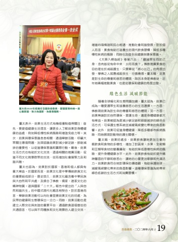 %u8463%u592a%u81ea2020%u5e74%u8d77%u64d4%u4efb%u5168%u570b%u653f%u5354%u59d4%u54e1%uff0c%u611b%u570b%u611b%u6e2f%u7684%u5979%u4e00%u76f4%u5fc3%u7e6b%u5bb6%u570b%uff0c%u81f4%u529b%u70ba%u570b%u5bb6%u3001%u70ba%u9999%u6e2f%u670d%u52d9%u3002%u8463%u592a%u8868%u793a%uff0c%u8339%u7d20%u751f%u6d3b%u65b9%u5f0f%u6709%u5e7e%u500b%u91cd%u9ede%u503c%u5f97%u95dc%u6ce8%uff1a%u9996%u5148%uff0c%u8981%u63d0%u5021%u5065%u5eb7%u751f%u6d3b%u7406%u5ff5%uff0c%u8b93%u66f4%u591a%u4eba%u4e86%u89e3%u8339%u7d20%u5c0d%u8eab%u9ad4%u5065%u5eb7%u7684%u76ca%u8655%uff0c%u4f8b%u5982%u964d%u4f4e%u6162%u6027%u75be%u75c5%u98a8%u96aa%u548c%u589e%u5f37%u514d%u75ab%u529b%u7b49%u3002%u5176%u6b21%uff0c%u8339%u7d20%u8207%u74b0%u4fdd%u610f%u8b58%u606f%u606f%u76f8%u95dc%uff0c%u901a%u904e%u8209%u8fa6%u6d3b%u52d5%uff0c%u547c%u7c72%u5927%u773e%u95dc%u6ce8%u74b0%u5883%u554f%u984c%uff0c%u52a0%u6df1%u8a8d%u8b58%u8339%u7d20%u5c0d%u6e1b%u5c11%u78b3%u8db3%u8de1%u3001%u7bc0%u80fd%u6e1b%u6392%u7684%u91cd%u8981%u6027%uff0c%u4ee5%u4fc3%u9032%u74b0%u4fdd%u610f%u8b58%u548c%u5be6%u969b%u884c%u52d5%u3002%u6700%u5f8c%uff0c%u8339%u7d20%u751f%u6d3b%u65b9%u5f0f%u4e5f%u6709%u52a9%u65bc%u6587%u5316%u4ea4%u6d41%uff0c%u900f%u904e%u76f8%u95dc%u7684%u63a8%u5ee3%u6d3b%u52d5%uff0c%u4fc3%u9032%u4e0d%u540c%u6587%u5316%u80cc%u666f%u7fa4%u773e%u7684%u4ea4%u6d41%uff0c%u5f9e%u800c%u589e%u52a0%u793e%u6703%u51dd%u805a%u529b%u53ca%u548c%u8ae7%u5171%u878d%u3002 %u8463%u592a%u4e5f%u8a8d%u70ba%uff0c%u8339%u7d20%u5c0d%u65bc%u570b%u5bb6%u3001%u9999%u6e2f%u548c%u500b%u4eba%u90fd%u5177%u6709%u91cd%u5927%u88e8%u76ca%u3002%u65bc%u570b%u5bb6%u800c%u8a00%uff0c%u8339%u7d20%u6587%u5316%u662f%u4e2d%u83ef%u50b3%u7d71%u98f2%u98df%u6587%u5316%u7684%u91cd%u8981%u7d44%u6210%u90e8%u5206%uff0c%u6b77%u53f2%u60a0%u4e45%uff1b%u8339%u7d20%u6587%u5316%u860a%u542b%u7740%u4e2d%u83ef%u6c11%u65cf%u8207%u5927%u81ea%u7136%u548c%u5e73%u5171%u8655%uff0c%u53ca%u63c9%u5408%u4e86%u4f5b%u6559%u3001%u5112%u5bb6%u3001%u9053%u5bb6%u6587%u5316%u7684%u7cbe%u795e%u7279%u8cea%u3002%u9019%u8207%u570b%u5bb6%u300c%u4e8c%u5341%u5927%u300d%u5831%u544a%u4e2d%u63d0%u51fa%u7684%u300c%u4eba%u8207%u81ea%u7136%u548c%u8ae7%u5171%u751f%u300d%u7684%u4e2d%u570b%u5f0f%u73fe%u4ee3%u5316%u6982%u5ff5%u76f8%u5951%u5408%u3002%u5c0d%u65bc%u9999%u6e2f%u800c%u8a00%uff0c%u8209%u8fa6%u8339%u7d20%u6d3b%u52d5%u53ef%u4ee5%u5411%u793e%u6703%u5ba3%u63da%u8339%u7d20%u6587%u5316%u7684%u597d%u8655%uff0c%u70ba%u6c11%u773e%u7684%u5065%u5eb7%u548c%u751f%u614b%u74b0%u4fdd%u51fa%u4e00%u5206%u529b%u3002%u540c%u6642%uff0c%u8339%u7d20%u6d3b%u52d5%u4e5f%u662f%u5efa%u7acb%u4eba%u969b%u4ea4%u5f80%u8207%u53cb%u8abc%u7684%u91cd%u8981%u5e73%u53f0%uff0c%u901a%u904e%u98f2%u98df%u9019%u500b%u666e%u4e16%u7684%u5171%u901a%u8a9e%u8a00%uff0c%u53ef%u4ee5%u8207%u4e0d%u540c%u7a2e%u65cf%u548c%u6587%u5316%u80cc%u666f%u7684%u4eba%u5efa%u7acb%u4ea4%u6d41%uff0c%u589e%u9032%u56db%u6d77%u60c5%u8abc%u548c%u6c11%u5fc3%u76f8%u901a%uff0c%u63a8%u52d5%u793e%u6703%u548c%u8ae7%u767c%u5c55%u3002%u5c0d%u65bc%u500b%u4eba%u800c%u8a00%uff0c%u7d20%u98df%u6709%u52a9%u6253%u9020%u990a%u751f%u7684%u73fe%u4ee3%u98f2%u98df%u7fd2%u6163%uff0c%u964d%u4f4e%u591a%u7a2e%u6162%u6027%u75be%u75c5%u7684%u98a8%u96aa%uff1b%u540c%u6642%u4e5f%u52a0%u5f37%u5168%u6c11%u5065%u5eb7%u8207%u74b0%u4fdd%u610f%u8b58%u3002%u300a%u5927%u4e58%u5165%u695e%u4f3d%u7d93%u300b%u5377%u7b2c%u516d%u4e91%uff1a%u300c%u89c0%u8af8%u773e%u751f%u540c%u65bc%u5df1%u8eab%uff0c%u5ff5%u8089%u7686%u5f9e%u6709%u547d%u4e2d%u4f86%uff0c%u4e91%u4f55%u800c%u98df%uff1f%u300d%u4f5b%u6559%u63a8%u5ee3%u7d20%u98df%u7684%u76ee%u7684%u662f%u5728%u65bc%u6212%u6bba%u8b77%u751f%uff0c%u53ea%u8981%u55ae%u5f9e%u300c%u5c07%u5fc3%u6bd4%u5df1%u300d%u7684%u89d2%u5ea6%u51fa%u767c%uff0c%u5b78%u4f5b%u4e4b%u4eba%u5c31%u61c9%u6212%u6bba%u653e%u751f%uff0c%u884c%u5584%u7a4d%u5fb7%u3002%u8463%u592a%u7a31%uff0c%u8339%u7d20%u662f%u5c0d%u751f%u547d%u7684%u5c0a%u91cd%u548c%u6148%u60b2%u7684%u9ad4%u73fe%uff0c%u9664%u56e0%u672c%u8eab%u662f%u4f5b%u6559%u5f92%uff0c%u8fd1%u5e74%u5979%u7a4d%u6975%u63a8%u52d5%u7d20%u98df%uff0c%u4e5f%u662f%u5f9e%u74b0%u4fdd%u548c%u5065%u5eb7%u7684%u89d2%u5ea6%u51fa%u767c%u3002%u7da0%u8272%u751f%u6d3b %u6e1b%u78b3%u7bc0%u80fd%u96a8%u7740%u5168%u7403%u6696%u5316%u548c%u751f%u614b%u554f%u984c%u52a0%u5287%uff0c%u8463%u592a%u8a8d%u70ba%uff0c%u8339%u7d20%u5df2%u6210%u70ba%u4e00%u7a2e%u611b%u8b77%u773e%u751f%u548c%u6ecb%u990a%u6148%u60b2%u5fc3%u7684%u751f%u6d3b%u9078%u64c7%u3002%u4e00%u65b9%u9762%uff0c%u4f5b%u6559%u8996%u8339%u7d20%u70ba%u5c0d%u751f%u547d%u7684%u5c0a%u91cd%u548c%u6148%u60b2%u7684%u9ad4%u73fe%uff1b%u53e6%u4e00%u65b9%u9762%uff0c%u8339%u7d20%u7121%u8ad6%u5c0d%u65bc%u81ea%u7136%u74b0%u4fdd%u3001%u611b%u8b77%u751f%u547d%uff0c%u9084%u662f%u8eab%u9ad4%u5065%u5eb7%u90fd%u5927%u6709%u88e8%u76ca%u3002%u8339%u7d20%u88ab%u8a8d%u70ba%u662f%u6e1b%u5c11%u78b3%u8db3%u8de1%u548c%u7bc0%u80fd%u6e1b%u6392%u7684%u7da0%u8272%u751f%u6d3b%u65b9%u5f0f%uff0c%u53ef%u4fdd%u8b77%u751f%u614b%u7cfb%u7d71%u4e26%u6e1b%u7de9%u6c23%u5019%u8b8a%u5316%u5e36%u4f86%u7684%u8ca0%u9762%u5f71%u97ff%u3002%u6b64%u5916%uff0c%u8339%u7d20%u53ef%u4fc3%u9032%u8eab%u9ad4%u5065%u5eb7%uff0c%u964d%u4f4e%u591a%u7a2e%u90fd%u5e02%u75be%u75c5%u98a8%u96aa%uff0c%u540c%u6642%u5c55%u73fe%u5c0d%u52d5%u7269%u7684%u8b77%u751f%u95dc%u61f7%u3002%u8463%u592a%u7a31%uff0c%u8339%u7d20%u597d%u8655%u591a%uff0c%u8339%u7d20%u98f2%u98df%u8b93%u5979%u66f4%u52a0%u6ce8%u91cd%u5747%u8861%u98f2%u98df%u548c%u98df%u7269%u7684%u591a%u6a23%u6027%uff0c%u589e%u52a0%u4e86%u5c0d%u852c%u83dc%u3001%u6c34%u679c%u3001%u5168%u7a40%u985e%u548c%u8c46%u985e%u7b49%u98df%u6750%u7684%u71df%u990a%u651d%u53d6%uff0c%u6709%u52a9%u65bc%u964d%u4f4e%u60a3%u6162%u6027%u75be%u75c5%u7684%u98a8%u96aa%uff0c%u63d0%u5347%u8eab%u9ad4%u5065%u5eb7%u6c34%u5e73%u3002%u6b64%u5916%uff0c%u8339%u7d20%u98f2%u98df%u6709%u52a9%u65bc%u63d0%u5347%u7cbe%u795e%u5c64%u9762%u7684%u5e73%u975c%u548c%u6148%u60b2%u5fc3%uff0c%u8b93%u5979%u7684%u5fc3%u9748%u66f4%u52a0%u5be7%u975c%u548c%u5145%u6eff%u6d3b%u529b%u3002%u8339%u7d20%u98f2%u98df%u7b26%u5408%u5979%u5c0d%u74b0%u4fdd