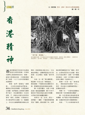 %u6587%uff1a%u9673%u9752%u6953 %u4f5c%u5bb6%u3001%u756b%u5bb6%u3001%u5999%u6cd5%u5bfa%u6587%u6559%u767c%u5c55%u7e3d%u76e3%u5716%uff1a%u9673%u4e00%u5e74%u9999%u6e2f%u7cbe%u795e%u300c%u526a%u4e0d%u65b7%u3001%u7406%u9084%u4e82%uff01%u300d%u6b64%u70ba%u651d%u5f71%u5bb6%u9673%u4e00%u5e74%u5728%u9326%u7530%u6c34%u5c3e%u6751%u62cd%u651d%u7684%u8001%u6995%u6a39%uff0c%u4ed6%u7a31%u70ba%u300a%u96e3%u5206%u96e3%u89e3%u300b%uff0c%u5012%u6559%u7b46%u8005%u60f3%u8d77%u90a3%u53e5%u300c%u526a%u4e0d%u65b7%u3001%u7406%u9084%u4e82%uff01%u300d%u5b83%u5e36%u7d66%u4eba%u7121%u9650%u7684%u6ec4%u6851%u611f%u3002 %u9999%u6e2f%u56de%u6b78%u5f8c%u628a%u6d0b%u7d2b%u834a%u4f5c%u70ba%u9999%u6e2f%u7279%u5225%u884c%u653f%u5340%u7684%u5340%u5fbd%u3002%u6d0b%u7d2b%u834a%u4e5f%u7b97%u5f97%u4e0a%u5177%u9999%u6e2f%u7279%u8272%u7684%u82b1%uff0c%u90a3%u9ebc%uff0c%u80fd%u5920%u4ee3%u8868%u9999%u6e2f%u7684%u6a39%uff0c%u53c8%u662f%u751a%u9ebc%u6a39%u5462%uff1f%u6211%u60f3%uff0c%u5341%u4e4b%u516b%u4e5d%u7684%u5e02%u6c11%u90fd%u6703%u8a8d%u70ba%u662f%u6995%u6a39%u3002%u6995%u6a39%uff0c%u6211%u5011%u4e00%u822c%u7a31%u70ba%u300c%u7d30%u8449%u6995%u300d%uff0c%u5b83%u7684%u800c%u4e14%u78ba%u662f%u6211%u5011%u9999%u6e2f%u4e00%u7a2e%u5177%u5730%u65b9%u7279%u8272%u7684%u6a39%u7a2e%uff0c%u5b83%u662f%u9999%u6e2f%u539f%u751f%u7269%u7a2e%u3002%u6211%u5011%u5dba%u5357%u4eba%u5c0d%u6995%u6a39%u53ef%u8b02%u719f%u6089%u4e0d%u904e%u4e86%uff0c%u800c%u4e14%u9084%u5f88%u89aa%u5207%u3002%u4f60%u8d70%u5230%u90ca%u5340%uff0c%u4e0d%uff0c%u5373%u4f7f%u5728%u5e02%u5340%u5167%u4ea6%u5e38%u898b%u5230%u751a%u6709%u300c%u500b%u6027%u300d%u7684%u6995%u6a39%uff0c%u5b83%u5014%u5f37%u7684%u751f%u547d%u529b%u6559%u6211%u5011%u597d%u751f%u611f%u52d5%u3002%u5728%u4e00%u5e45%u7246%u58c1%u4e0a%uff0c%u4f60%u5f80%u5f80%u5728%u7f45%u7e2b%u9593%u770b%u5230%u6995%u6a39%u751f%u9577%u958b%u4f86%uff1b%u5373%u4f7f%u662f%u6975%u5c11%u6975%u5c11%u6ce5%u571f%uff0c%u5b83%u4e5f%u6703%u5ef6%u4f38%u958b%u53bb%u3002%u9019%u7a2e%u5177%u5805%u5f37%u751f%u547d%u529b%u7684%u6995%u6a39%uff0c%u5f80%u5f80%u69cb%u6210%u4e00%u5e45%u5e45%u300c%u90fd%u5e02%u5947%u89c0%u300d%u3002%u5e74%u524d%uff0c%u5728%u4e00%u500b%u300c%u9ed1%u767d%u651d%u5f71%u5c55%u300d%u770b%u5230%u9673%u4e00%u5e74%u5148%u751f%u7684%u300c%u6995%u6a39%u7d44%u66f2%u300d%uff0c%u9817%u53d7%u611f%u52d5%u3002%u4e0d%u50c5%u662f%u56e0%u70ba%u4ed6%u651d%u5f71%u6280%u5de7%u9ad8%uff0c%u66f4%u91cd%u8981%u7684%u662f%u4ed6%u5c0d%u6995%u6a39%u7684%u611f%u60c5%u3002%u9673%u4e00%u5e74%u662f%u543e%u756b%u53cb%uff0c%u4ed6%u662f%u300a%u4e2d%u570b%u65c5%u904a%u300b%u96dc%u8a8c%u526f%u7e3d%u7de8%u8f2f%uff0c%u6578%u5341%u5e74%u4f86%u4e0d%u50c5%u5b5c%u5b5c%u4e0d%u5026%u5730%u57cb%u9996%u5728%u9019%u4efd%u520a%u7269%u88cf%uff0c%u4e5f%u540c%u6642%u6c89%u6d78%u65bc%u7e6a%u756b%u8207%u651d%u5f71%u3002%u6211%u5e38%u5411%u4e00%u4e9b%u300c%u62cd%u53cb%u300d%u63d0%u51fa%u4e00%u500b%u554f%u984c%u2014%u651d%u5f71%uff0c%u4e0d%u50c5%u662f%u62ff%u7740%u76f8%u6a5f%u898b%u5230%u300c%u975a%u666f%u300d%u4fbf%u5feb%u901f%u5f71%u4e0b%u4f86%uff1b%u5982%u679c%u771f%u7684%u8981%u628a%u651d%u5f71%u63d0%u5347%u5230%u300c%u85dd%u8853%u300d%u5169%u5b57%u53bb%uff0c%u5fc5%u9808%u6709%u597d%u597d%u7684%u6587%u5316%u5e95%u860a%uff0c%u8981%u5f9e%u6587%u5316%u5167%u6db5%u53bb%u8981%u6c42%u3002%u9019%u662f%u4e00%u5207%u4e2d%u570b%u85dd%u8853%u7684%u57fa%u672c%uff0c%u4e5f%u662f%u4e00%u5207%u4e2d%u570b%u6587%u5316%u85dd%u8853%u7684%u6838%u5fc3%u50f9%u503c%uff08%u5305%u62ec%u4f5b%u6587%u5316%uff09%u3002%u770b%u9673%u4e00%u5e74%u90a3%u4e00%u7d44%u300c%u6995%u6a39%u7d44%u66f2%u300d%uff0c%u4fbf%u7d66%u6211%u5f37%u70c8%u5730%u60f3%u5230%u300c%u6587%u5316%u300d%u5169%u5b57%uff0c%u800c%u4e14%u9019%u6587%u5316%u9084%u5e36%u7740%u5c0d%u6b77%u53f2%u3001%u5c0d%u50b3%u7d71%u7684%u8ffd%u601d%u3002%u554f%u9673%u4e00%u5e74%uff1a%u300c%u4f60%u662f%u7279%u5225%u559c%u6b61%u62cd%u6995%u6a39%u7684%u55ce%uff1f%u4f60%u5c0d%u6995%u6a39%u60c5%u6709%u7368%u937e%uff1f%u300d%u9673%u4e00%u5e74%u5c0d%u9999%u6e2f%u7684%u6995%u6a39%u771f%u662f%u60c5%u6709%u7368%u937e%uff0c%u4ed6%u4e0d%u50c5%u5728%u5e02%u5340%u8857%u982d%u5df7%u5c3e%u62cd%u651d%uff0c%u4ed6%u9084%u7d93%u5e38%u5230%u90ca%u5916%u8207%u96e2%u5cf6%u5c0b%u8a2a%u3002%u4ed6%u8aaa%uff1a%u300c%u4e0d%u5c11%u8001%u6995%u6a39%u90fd%u6709%u898b34 // Buddhist in Hong Kong . June 2024