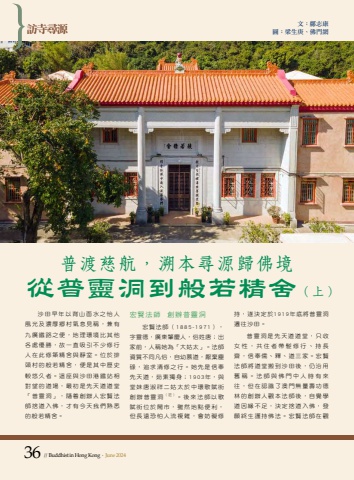 36 // Buddhist in Hong Kong . June 2024%u6587%uff1a%u913a%u5fd7%u5eb7%u5716%uff1a%u6881%u751f%u5e9a%u3001%u4f5b%u9580%u7db2%u6c99%u7530%u65e9%u5e74%u4ee5%u80cc%u5c71%u9762%u6c34%u4e4b%u6021%u4eba%u98a8%u5149%u53ca%u6fc3%u539a%u9109%u6751%u6c23%u606f%u898b%u7a31%uff0c%u517c%u6709%u4e5d%u5ee3%u9435%u8def%u4e4b%u4fbf%uff0c%u5730%u7406%u74b0%u5883%u6bd4%u5176%u4ed6%u5404%u8655%u512a%u52dd%uff0c%u6545%u4e00%u76f4%u5438%u5f15%u4e0d%u5c11%u4fee%u884c%u4eba%u5728%u6b64%u4fee%u7bc9%u7cbe%u820d%u8207%u975c%u5ba4%u3002%u4f4d%u65bc%u6392%u982d%u6751%u7684%u822c%u82e5%u7cbe%u820d%uff0c%u4fbf%u662f%u5176%u4e2d%u6b77%u53f2%u8f03%u60a0%u4e45%u8005%u3002%u9019%u5ea7%u8207%u6c99%u7530%u6e2f%u9435%u7ad9%u76f8%u5c0d%u671b%u7684%u9053%u5834%uff0c%u6700%u521d%u662f%u5148%u5929%u9053%u9053%u5802%u300c%u666e%u9748%u6d1e%u300d%uff0c%u96a8%u7740%u5275%u8fa6%u4eba%u5b8f%u8ce2%u6cd5%u5e2b%u6368%u9053%u5165%u4f5b%uff0c%u624d%u6709%u4eca%u5929%u6211%u5011%u719f%u6089%u7684%u822c%u82e5%u7cbe%u820d%u3002%u5b8f%u8ce2%u6cd5%u5e2b %u5275%u8fa6%u666e%u9748%u6d1e%u5b8f%u8ce2%u6cd5%u5e2b%uff081885-1971%uff09%uff0c%u5b57%u9748%u5fb7%uff0c%u5ee3%u6771%u8087%u6176%u4eba%uff0c%u4fd7%u59d3%u5510%uff1b%u51fa%u5bb6%u524d%uff0c%u4eba%u7a31%u5979%u70ba%u300c%u5927%u59d1%u592a%u300d%u3002%u6cd5%u5e2b%u8cc7%u8cea%u4e0d%u540c%u51e1%u4fd7%uff0c%u81ea%u5e7c%u6155%u9053%uff0c%u53ad%u68c4%u5875%u788c%uff0c%u8ffd%u6c42%u6e05%u4fee%u4e4b%u884c%u3002%u5979%u5148%u662f%u4fe1%u5949%u5148%u5929%u9053%uff0c%u8339%u7d20%u7368%u8eab%uff1b1903%u5e74%uff0c%u8207%u5802%u59b9%u5510%u6dd1%u7965%u4e8c%u59d1%u592a%u65bc%u4e2d%u74b0%u6b4c%u8ce6%u8857%u5275%u8fa6%u666e%u9748%u6d1e%uff08%u8a3b%uff09%u3002%u5f8c%u4f86%u6cd5%u5e2b%u4ee5%u6b4c%u8ce6%u8857%u4f4d%u65bc%u9b27%u5e02%uff0c%u96d6%u7136%u5730%u9ede%u4fbf%u5229%uff0c%u4f46%u9577%u9060%u6050%u6015%u4eba%u6d41%u8907%u96dc%uff0c%u6703%u59a8%u7919%u4fee%u6301%uff0c%u9042%u6c7a%u5b9a%u65bc1919%u5e74%u5e95%u5c07%u666e%u9748%u6d1e%u9077%u5f80%u6c99%u7530%u3002%u666e%u9748%u6d1e%u662f%u5148%u5929%u9053%u9053%u5802%uff0c%u53ea%u6536%u5973%u6027%uff0c%u5171%u4f4f%u8005%u5e36%u9aee%u4fee%u884c%u3001%u6301%u9577%u9f4b%uff0c%u4fe1%u5949%u5112%u3001%u91cb%u3001%u9053%u4e09%u5bb6%u3002%u5b8f%u8ce2%u6cd5%u5e2b%u5c07%u9053%u5802%u642c%u5230%u6c99%u7530%u5f8c%uff0c%u4ecd%u6cbf%u7528%u820a%u7a31%u3002%u6cd5%u5e2b%u8207%u4f5b%u9580%u4e2d%u4eba%u6642%u6709%u4f86%u5f80%uff0c%u4f46%u5728%u8a8d%u8b58%u4e86%u6fb3%u9580%u7121%u91cf%u58fd%u529f%u5fb7%u6797%u7684%u5275%u8fa6%u4eba%u89c0%u672c%u6cd5%u5e2b%u5f8c%uff0c%u81ea%u89ba%u5b78%u9053%u56e0%u7de3%u4e0d%u8db3%uff0c%u6c7a%u5b9a%u6368%u9053%u5165%u4f5b%uff0c%u767c%u9858%u7d42%u751f%u8b77%u6301%u4f5b%u6cd5%u3002%u5b8f%u8ce2%u6cd5%u5e2b%u5728%u89c0%u8a2a%u5bfa%u5c0b%u6e90%u666e%u6e21%u6148%u822a%uff0c%u6eaf%u672c%u5c0b%u6e90%u6b78%u4f5b%u5883 %u5f9e%u666e%u9748%u6d1e%u5230%u822c%u82e5%u7cbe%u820d%uff08%u4e0a%uff09