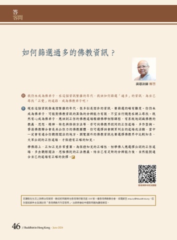 46 // Buddhist in Hong Kong . June 2024%u5982%u4f55%u7be9%u9078%u904e%u591a%u7684%u4f5b%u6559%u8cc7%u8a0a%uff1f%u6f14%u6148%u6cd5%u5e2b %u89e3%u7b54%u554f %u6211%u4ecd%u672a%u6210%u70ba%u4f5b%u5f1f%u5b50%uff0c%u5728%u9019%u500b%u8cc7%u8a0a%u7e41%u96dc%u7684%u5e74%u4ee3%uff0c%u6211%u8a72%u5982%u4f55%u7be9%u9078%u300c%u904e%u591a%u300d%u7684%u8cc7%u8a0a%uff0c%u70ba%u81ea%u5df1%u5c0b%u627e%u300c%u6b63%u89ba%u300d%u7684%u9053%u8def%uff0c%u6210%u70ba%u4f5b%u6559%u5f1f%u5b50%u5462%uff1f%u7b54 %u73fe%u5728%u9019%u500b%u8cc7%u8a0a%u767c%u9054%u800c%u7e41%u96dc%u7684%u5e74%u4ee3%uff0c%u5f88%u591a%u4f3c%u662f%u800c%u975e%u7684%u8cc7%u8a0a%uff0c%u8981%u7be9%u9078%u7684%u78ba%u6709%u96e3%u5ea6%u3002%u4f60%u4ecd%u672a%u6210%u70ba%u4f5b%u5f1f%u5b50%uff0c%u53ef%u80fd%u5c0d%u4f5b%u6559%u8cc7%u8a0a%u7684%u771f%u507d%u7684%u5206%u8fa8%u80fd%u529b%u6709%u9650%uff0c%u4e0d%u5b9c%u81ea%u884c%u96a8%u610f%u5728%u7db2%u4e0a%u5c0b%u627e%u3002%u65e2%u7136%u6709%u5fc3%u6210%u70ba%u4f5b%u5f1f%u5b50%uff0c%u61c9%u8a72%u5230%u6b63%u4fe1%u7684%u4f5b%u6559%u9053%u5834%u5831%u8b80%u4f5b%u5b78%u521d%u968e%u8ab2%u7a0b%uff0c%u6709%u7cfb%u7d71%u5730%u8a8d%u8b58%u4f5b%u6559%u7684%u6559%u7fa9%u3001%u601d%u60f3%u3001%u7cbe%u795e%u3001%u7279%u8272%u8207%u4fee%u6301%u65b9%u6cd5%u7b49%uff0c%u4ea6%u53ef%u5411%u4f5b%u6559%u754c%u8a8d%u540c%u7684%u6b63%u4fe1%u9053%u5834%uff0c%u591a%u4f5c%u67e5%u8a62%u3002%u9999%u6e2f%u4f5b%u6559%u806f%u5408%u6703%u662f%u5177%u516c%u4fe1%u529b%u7684%u4f5b%u6559%u5718%u9ad4%uff0c%u4f60%u53ef%u9078%u64c7%u8a72%u6703%u7db2%u9801%u5217%u51fa%u7684%u9053%u5834%u6216%u6d3b%u52d5%uff0c%u7576%u4e2d%u4e00%u5b9a%u6703%u6709%u9069%u5408%u4f60%u807d%u7d93%u805e%u6cd5%u7684%u5730%u65b9%u3002%u700f%u89bd%u570b%u5916%u7684%u4f5b%u6559%u8cc7%u8a0a%u4e5f%u8981%u9078%u64c7%u4f5b%u6559%u754c%u4e2d%u6bd4%u8f03%u77e5%u540d%u3001%u5927%u773e%u516c%u8a8d%u7684%u6b63%u4fe1%u9053%u5834%uff0c%u624d%u4fdd%u8b49%u6709%u6b63%u78ba%u7684%u77e5%u898b%u3002%u5b78%u4f5b%u8def%u4e0a%uff0c%u6b63%u77e5%u6b63%u898b%u975e%u5e38%u91cd%u8981%u3002%u70ba%u4fdd%u8b49%u77e5%u898b%u7684%u6b63%u78ba%u6027%uff0c%u521d%u5b78%u4f5b%u4eba%u61c9%u9078%u64c7%u516c%u8a8d%u7684%u6b63%u4fe1%u9053%u5834%uff0c%u591a%u53bb%u807d%u7d93%u805e%u6cd5%uff0c%u601d%u60df%u4f5b%u9640%u7684%u6b63%u6cd5%u6559%u7fa9%u3002%u5f85%u81ea%u5df1%u6709%u8db3%u5920%u7684%u5206%u8fa8%u80fd%u529b%u5f8c%uff0c%u81ea%u7136%u80fd%u5c0d%u9069%u5408%u81ea%u5df1%u7684%u9053%u5834%u6709%u6b63%u78ba%u7684%u6289%u64c7%u3002%u7b54%u5ba2%u554f%u9999%u6e2f%u4f5b%u6559%u5bfa%u9662%u53ca%u5718%u9ad4%u82e5%u8b80%u8005%u5728%u751f%u6d3b%u4e0a%u5c0d%u4f5b%u6cd5%u6709%u7591%u60d1%uff0c%u6b61%u8fce%u628a%u554f%u984c%u5bc4%u5f80%u9999%u6e2f%u7063%u4ed4%u99f1%u514b%u9053 338 %u865f 1 %u6a13%u9999%u6e2f%u4f5b%u6559%u806f%u5408%u6703%uff0c%u6216%u96fb%u90f5%u81f3 enquiry@hkbuddhist.org%uff0c%u4fe1%u5c01%u9762%u6216%u90f5%u4ef6%u4e3b%u65e8%u8acb%u8a3b%u660e%u300c%u9999%u6e2f%u4f5b%u6559%u6708%u520a%u7b54%u5ba2%u554f%u300d%u3002%u6cd5%u5e2b%u5c07%u6703%u5f9e%u4e2d%u9078%u53d6%u554f%u984c%u70ba%u8b80%u8005%u89e3%u7b54%u3002