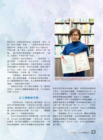 %u9ece%u66c9%u6d0b%u5f8b%u5e2b%u8868%u793a%uff0c%u8fd1%u5e74%u5404%u65b9%u589e%u5f37%u63a8%u52d5%u751f%u6b7b%u6559%u80b2%u4ee5%u53ca%u767c%u751f%u4e86%u65b0%u51a0%u75c5%u6bd2%u75ab%u60c5%uff0c%u5e02%u6c11%u5c0d%u9810%u5148%u8a02%u7acb%u907a%u56d1%u7684%u63a5%u53d7%u7a0b%u5ea6%u6bd4%u65e9%u5e74%u63d0%u9ad8%u4e86%u5f88%u591a%u3002%u5c0d%u65bc%u540d%u5229%uff0c%u5e38%u9716%u6cd5%u5e2b%u5247%u8a8d%u70ba%uff0c%u6bcb%u9808%u523b%u610f%u300c%u770b%u6de1%u300d%u540d%u5229%uff0c%u4f46%u4ea6%u4e0d%u9700%u8981%u300c%u770b%u91cd%u300d%uff1a%u300c%u9019%u610f%u601d%u662f%u6307%u7576%u540d%u5229%u51fa%u73fe%u7684%u6642%u5019%uff0c%u4fbf%u8b93%u5b83%u51fa%u73fe%uff0c%u5373%u662f%u4e0d%u7528%u53bb%u4e0d%u65b7%u8ffd%u6c42%uff0c%u4e0d%u8981%u57f7%u7740%uff1b%u7576%u300e%u770b%u6de1%u300f%u7684%u6642%u5019%uff0c%u4fbf%u7b49%u65bc%u4e0d%u8981%u300e%u770b%u91cd%u300f%uff0c%u7576%u4e2d%u53d6%u5f97%u5e73%u8861%u5f88%u91cd%u8981%u3002%u540c%u6642%u9084%u8981%u6ce8%u610f%uff0c%u300e%u770b%u6de1%u300f%u7684%u610f%u601d%uff0c%u4e0d%u662f%u7b49%u65bc%u8981%u300e%u6297%u62d2%u300f%u3002%u300d%u300a%u963f%u542b%u7d93%u300b%u6709%u56db%u53e5%u5048%u8a9e%u4e91%uff1a%u300c%u4e00%u65bd%u60b2%u548c%u656c%uff0c%u4e8c%u5132%u4e0d%u6642%u9700%uff1b%u4e09%u5206%u71df%u751f%u696d%uff0c%u56db%u5206%u751f%u6d3b%u7528%u3002%u300d%u5e38%u9716%u6cd5%u5e2b%u8aaa%uff0c%u521d%u5b78%u4f5b%u6642%u807d%u805e%u9019%u5048%u8a9e%uff0c%u5370%u8c61%u975e%u5e38%u6df1%u523b%u3002%u6b64%u8a9e%u662f%u6307%u5047%u5982%u8cfa%u5230%u5341%u5206%u7684%u9322%uff0c%u6309%u9996%u53e5%u7684%u5efa%u8b70%uff0c%u4fbf%u662f%u4ee5%u7576%u4e2d%u7684%u5341%u5206%u4e4b%u4e00%u884c%u5584%u3002%u56e0%u6b64%uff0c%u5982%u6709%u7a69%u5b9a%u7684%u8077%u696d%u3001%u6536%u5165%uff0c%u4e0d%u8981%u5e38%u5e38%u5bb3%u6015%uff0c%u65e5%u5f8c%u842c%u4e00%u9322%u300c%u4e0d%u5920%u7528%u300d%u3002%u300c%u5982%u6108%u5bb3%u6015%uff0c%u8cfa%u9322%u53ef%u80fd%u66f4%u8f9b%u82e6%uff0c%u56e0%u70ba%u6c38%u9060%u4e0d%u6703%u6eff%u8db3%u3002%u7576%u4eba%u7d93%u5e38%u5f88%u64d4%u6182%uff0c%u4ed6%u4fbf%u6703%u8655%u65bc%u8ca0%u9762%u7684%u60c5%u7dd2%uff0c%u5c0d%u5fc3%u9748%u5065%u5eb7%u69cb%u6210%u5f88%u5927%u640d%u5bb3%uff0c%u800c%u5fc3%u9748%u5065%u5eb7%u6703%u5f71%u97ff%u751f%u7406%u5065%u5eb7%u3002%u300d%u5e38%u9716%u6cd5%u5e2b%u4f5c%u51fa%u958b%u793a%u3002%u4f5b%u6559%u5f92%u7684%u5e03%u65bd%uff0c%u9664%u4e86%u6a02%u65bc%u4f9b%u990a%u4f5b%u3001%u6cd5%u3001%u50e7%u548c%u5176%u4ed6%u773e%u751f%uff0c%u5373%u4f7f%u8a02%u7acb%u907a%u56d1%u6350%u8d08%u907a%u7522%u884c%u5584%uff0c%u4e0d%u5c11%u4f5b%u6559%u5f92%u540c%u6a23%u5341%u5206%u652f%u6301%u3002%u8a02%u7acb%u907a%u56d1%u6e1b%u722d%u62d7%u300c%u6211%u5011%u5e38%u6709%u8aaa%uff1a%u4e0d%u8981%u70ba%u5225%u4eba%u5e36%u4f86%u9ebb%u7169%uff1b%u81ea%u5df1%u751f%u524d%u52aa%u529b%u6240%u7d2f%u7a4d%u7684%u8ca1%u5bcc%uff0c%u4e0d%u60f3%u7531%u5225%u4eba%u4f86%u5206%u914d%uff0c%u751a%u81f3%u51fa%u73fe%u722d%u62d7%u3002%u6700%u7406%u60f3%u7684%u505a%u6cd5%uff0c%u5c31%u662f%u5728%u751f%u524d%u8aaa%u660e%u81ea%u5df1%u7684%u610f%u9858%uff0c%u81ea%u5df1%u7684%u8ca1%u7522%u81ea%u5df1%u8a71%u4e8b%uff0c%u81ea%u5df1%u5206%u914d%u3002%u300d%u300c%u907a%u5584%u6700%u6a02%u300d%u5275%u8fa6%u4eba%u4e4b%u4e00%u7684%u9ece%u66c9%u6d0b%u5f8b%u5e2b%u8aaa%u3002%u7d04%u56db%u5e74%u524d%u9ece%u5f8b%u5e2b%u4ecd%u65bc%u5f8b%u5e2b%u6a13%u4efb%u8077%uff0c%u6709%u4f4d%u7537%u58eb%u5230%u4f86%uff0c%u51fa%u793a%u5176%u4ea1%u59ca%u6240%u64ec%u7684%u907a%u56d1%u3002%u300c%u8a72%u7537%u58eb%u8aaa%uff0c%u5176%u59ca%u751f%u524d%u7368%u8eab%uff0c%u5979%u624b%u5beb%u7684%u907a%u56d1%u5beb%u4e0a90%%u8ca1%u7522%u7d66%u5f1f%u59b9%uff0c10%%u6350%u7d66%u6148%u5584%u6a5f%u69cb%u3002%u56e0%u8a72%u624b%u5beb%u907a%u56d1%u6c92%u6709%u8aee%u8a62%u5f8b%u5e2b%uff0c%u907a%u56d1%u7684%u683c%u5f0f%u548c%u5167%u5bb9%u4ea6%u6709%u932f%u6f0f%u3002%u7576%u6642%uff0c%u6211%u5f88%u5e0c%u671b%u80fd%u5e6b%u52a9%u90a3%u4f4d%u7537%u58eb%uff0c%u5b8c%u6210%u5176%u59ca%u7684%u907a%u9858%uff0c%u53ef%u60dc%u7576%u6642%u6b7b%u8005%u5df2%u77e3%uff0c%u56e0%u6b64%u5728%u57f7%u884c%u907a%u56d1%u9047%u4e0a%u4e00%u4e9b%u56f0%u96e3%uff0c%u800c%u4e14%u6211%u5011%u4e0d%u77e5%u9053%u5176%u4ea1%u59ca%u5e0c%u671b%u6350%u8d08%u7d66%u54ea%u4e9b%u6a5f%u69cb%uff0c%u6545%u7559%u4e0b%u4e86%u4e00%u9ede%u907a%u61be%u3002%u300d%u6839%u64da%u73fe%u884c%u6cd5%u4f8b%uff0c%u5fc5%u9808%u900f%u904e%u8a02%u7acb%u6709%u6548%u7684%u907a%u56d1%uff0c%u624d%u80fd%u5920%u628a%u907a%u7522%u8d08%u4e88%u6148%u5584%u6a5f%u69cb%u3002%u9ece%u5f8b%u5e2b%u7576%u6642%u5411%u505a%u793e%u5de5%u7684%u7236%u89aa%u4e86%u89e3%uff08%u9ece%u7236%u70ba%u672c%u6e2f%u300c%u7b2c%u4e00%u4ee3%u300d%u793e%u5de5 %uff09%uff0c%u624d%u77e5%u793e%u798f%u754c%u56e0%u8cc7%u6e90%u548c%u6cd5%u5f8b%u4eba%u624b%u7b49%u56e0%u7d20%uff0c%u672a%u80fd%u5927%u529b%u63a8%u52d5%u907a%u7522%u6350%u8d08%u3002%u5f9e%u6b64%uff0c%u5169%u7236%u5973%u4e0b%u5b9a%u6c7a%u5fc3%u53bb%u505a%u3002%u300c%u907a%u5584%u6700%u6a02%u300d%u65bc2021%u5e74%u6210%u7acb%u5f8c%uff0c%u5718%u968a%u6210%u54e1%u7a4d%u6975%u806f%u7d61%u672c%u5730%u8a8d%u53ef%u6148%u5584%u6a5f%u69cb%uff0c%u4ee5%u53ca%u63a8%u52d5%u907a%u7522%u6350%u8d08%uff0c%u4ed6%u5011%u4e5f%u8207%u6148%u5584%u6a5f%u69cb%u5408%u4f5c%u8209%u8fa6%u8b1b%u5ea7%uff0c%u5411%u670d%u52d9%u4f7f%u7528%u8005%u6216%u5e02%u6c11%u8b1b%u89e3%u7576%u4e2d%u7a0b%u5e8f%u3002%u81f3%u4eca%u5e747%u6708%u5e95%uff0c%u5408%u4f5c%u7684%u6148%u5584%u6a5f%u69cb%u5df2%u670965%u9593%u3002%u9999%u6e2f%u4f5b%u6559 . %u4e8c%u25cb%u4e8c%u56db%u5e74%u4e5d%u6708 // 13