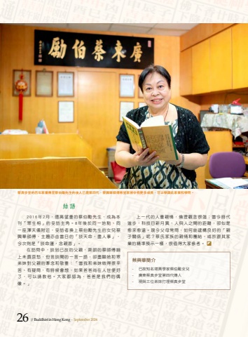 %u8521%u8208%u83ef%u7c21%u4ecb-%u0009 %u5df2%u6545%u77e5%u540d%u582a%u8f3f%u5b78%u5bb6%u8521%u4f2f%u52f5%u5973%u5152-%u0009 %u5ee3%u6771%u8521%u771f%u6b65%u5802%u7b2c%u56db%u4ee3%u50b3%u4eba-%u0009 %u73fe%u8207%u4e09%u4f4d%u5f1f%u59b9%u6253%u7406%u8521%u771f%u6b65%u5802%u7d50%u8a9e2016%u5e742%u6708%uff0c%u5fb7%u9ad8%u671b%u91cd%u7684%u8521%u4f2f%u52f5%u5148%u751f%uff0c%u6210%u70ba%u672c%u520a%u300c%u773e%u751f%u76f8%u300d%u7684%u53d7%u8a2a%u4e3b%u89d2%u30028%u5e74%u5f8c%u65bc%u540c%u4e00%u5730%u9ede%u3001%u540c%u4e00%u5ea7%u6e3e%u5929%u5100%u9644%u8fd1%uff0c%u53d7%u8a2a%u8005%u63db%u4e0a%u8521%u4f2f%u52f5%u5148%u751f%u7684%u5973%u5152%u8521%u8208%u83ef%u5e2b%u5085%uff0c%u4e3b%u984c%u4ea6%u7531%u7576%u65e5%u7684%u300c%u8ac7%u5929%u547d%uff0c%u76e1%u4eba%u4e8b%u300d%uff0c%u4eca%u6b21%u5247%u662f%u300c%u8ac7%u547d%u904b%uff0c%u5ff5%u89aa%u6069%u300d%u3002%u5728%u8a2a%u554f%u4e2d%uff0c%u8ac7%u5230%u5df2%u6545%u7684%u7236%u89aa%uff0c%u723d%u6717%u7684%u8521%u5e2b%u5085%u81c9%u4e0a%u672a%u9732%u54c0%u6101%uff0c%u4f46%u8a00%u8ac7%u9593%u7684%u4e00%u8a00%u4e00%u8a9e%uff0c%u537b%u76e1%u986f%u5979%u548c%u773e%u5f1f%u59b9%u5c0d%u7236%u89aa%u7684%u727d%u5ff5%u548c%u656c%u91cd%uff1a%u300c%u7576%u6211%u548c%u5f1f%u59b9%u505a%u5f97%u5f88%u8f9b%u82e6%u3001%u6709%u7591%u554f%uff0c%u6709%u6642%u5019%u6703%u60f3%uff0c%u5982%u679c%u7238%u7238%u5c1a%u5728%u4eba%u4e16%u4fbf%u597d%u4e86%uff0c%u53ef%u4ee5%u8acb%u6559%u4ed6%u3002%u5927%u5bb6%u90fd%u8a8d%u70ba%uff0c%u7238%u7238%u662f%u6211%u5011%u7684%u5076%u50cf%u3002%u300d%u4e0a%u4e00%u4ee3%u7684%u4eba%u91cd%u89aa%u60c5%uff0c%u502b%u7406%u89c0%u5ff5%u5f88%u5f37%uff1b%u7576%u4eca%u6642%u4ee3%u9032%u6b65%uff0c%u79d1%u6280%u65e5%u65b0%u6708%u7570%uff0c%u4eba%u8207%u4eba%u4e4b%u9593%u7684%u8ddd%u96e2%uff0c%u537b%u4f3c%u662f%u6108%u4f86%u6108%u9060%u3002%u73fe%u4eca%u7236%u6bcd%u5e38%u554f%uff0c%u5982%u4f55%u80fd%u5efa%u69cb%u826f%u597d%u7684%u300c%u89aa%u5b50%u95dc%u4fc2%u300d%u5462%uff1f%u8521%u6c0f%u5bb6%u65cf%u7684%u89aa%u60c5%u548c%u5718%u7d50%uff0c%u6216%u8a31%u8ddf%u5176%u5bb6%u696d%u7684%u7cbe%u6e96%u9810%u793a%u4e00%u6a23%uff0c%u5f88%u503c%u5f97%u5927%u5bb6%u53c3%u8003%u3002 %u8521%u771f%u6b65%u5802%u7684%u767e%u5e74%u5bb6%u696d%u50b3%u81f3%u8521%u4f2f%u52f5%u5148%u751f%u7684%u5f8c%u4eba%u5df2%u662f%u7b2c%u56db%u4ee3%uff0c%u8521%u8208%u83ef%u5e2b%u5085%u5e0c%u671b%u5bb6%u65cf%u4e2d%u6709%u66f4%u591a%u6210%u54e1%uff0c%u53ef%u4ee5%u5b78%u8b58%u6b64%u5bb6%u696d%u548c%u5b78%u554f%u300226 // Buddhist in Hong Kong . September 2024