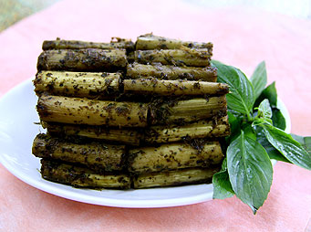 材料:老莧菜、香椿、沙茶醬、糖、華鹽、豉油適量